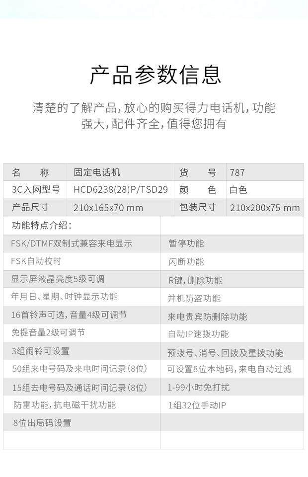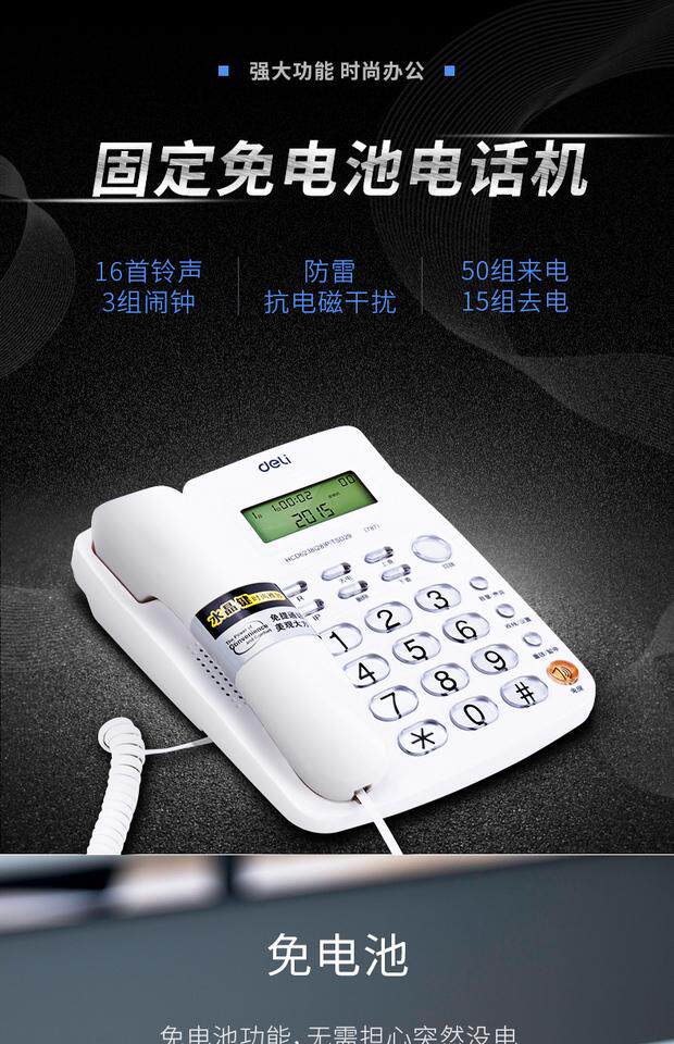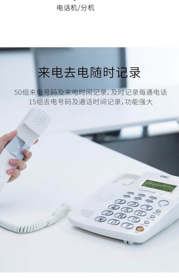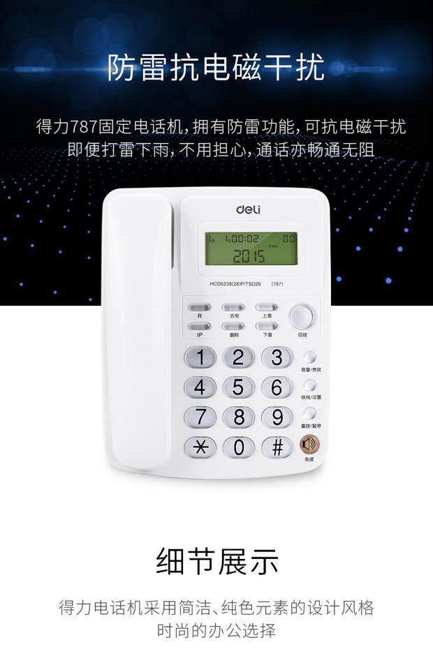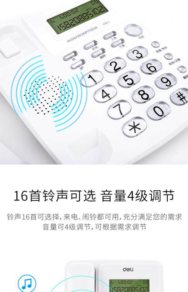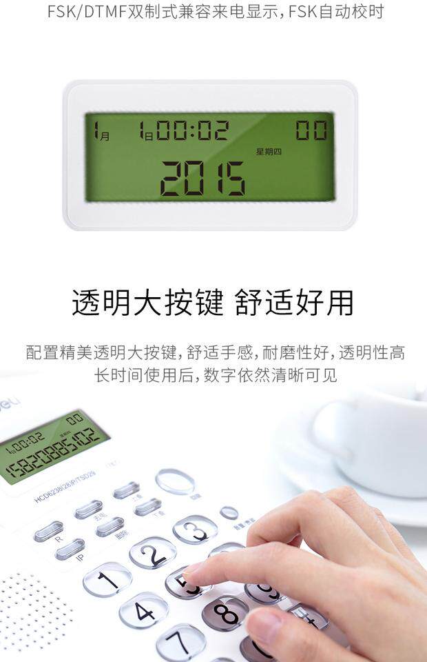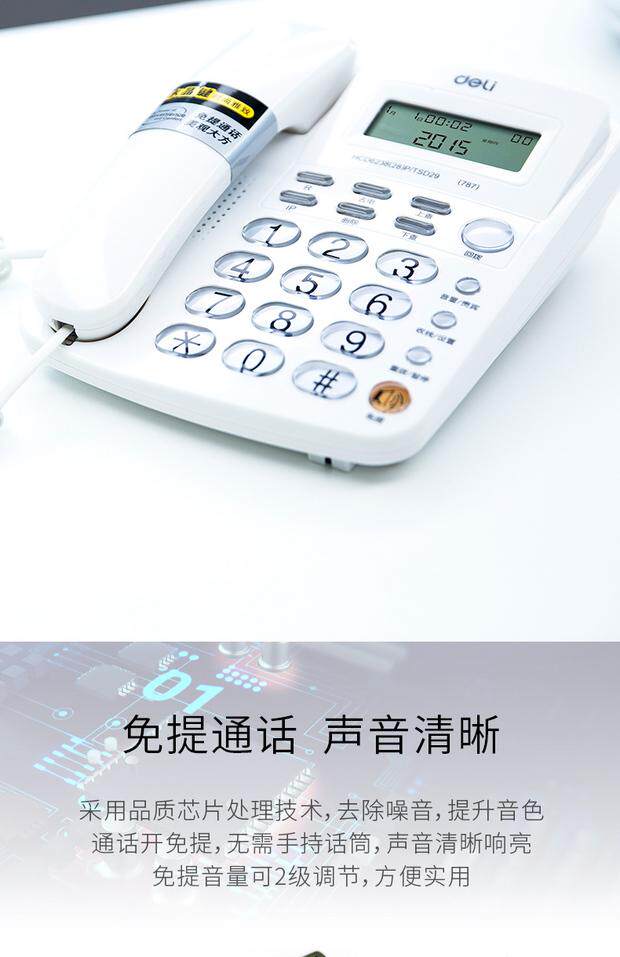 Deli 787 Call Callery Display Office Home Phone/Fixed Phone/Loc -Machine Crystal Key White