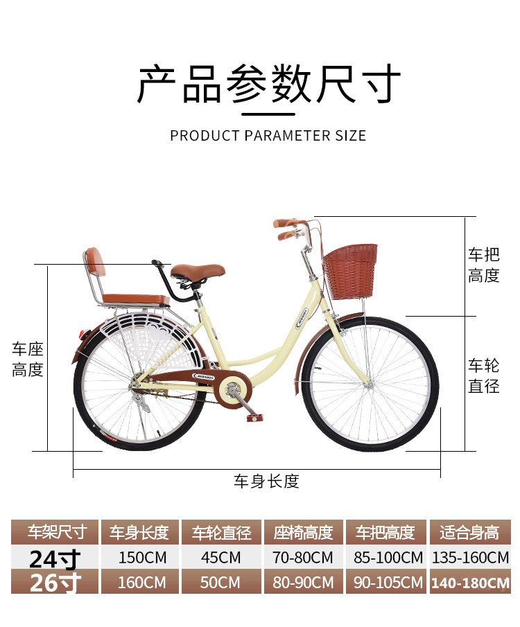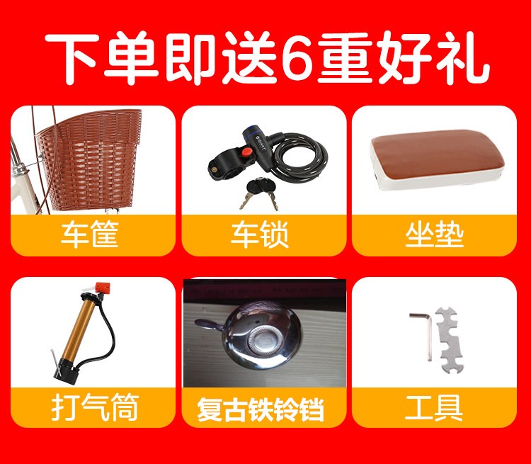 Ретро воздушный насос подходит для мужчин и женщин для школьников для отдыха, велосипед для пожилых людей, 24 дюймов, 26 дюймов