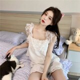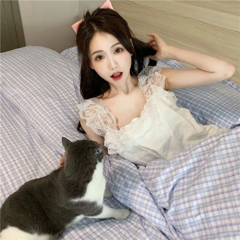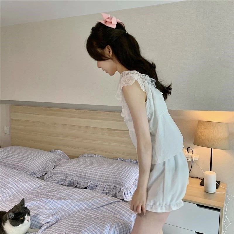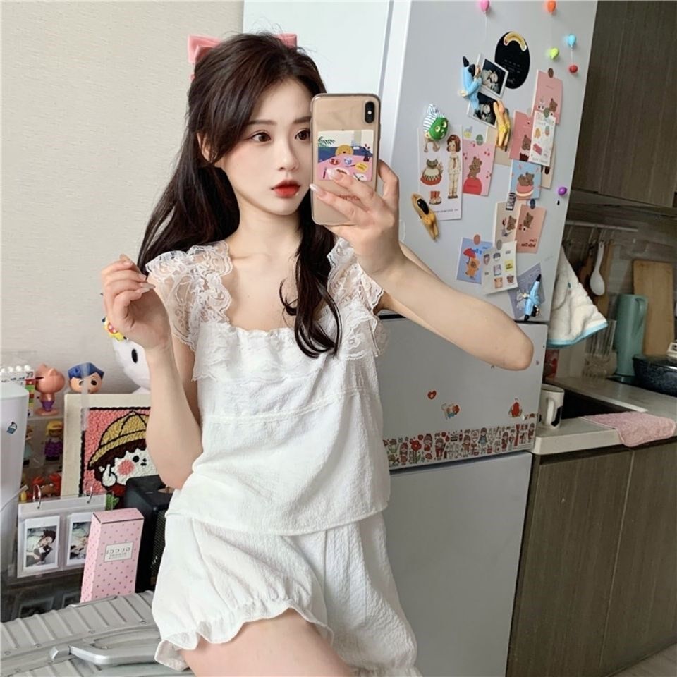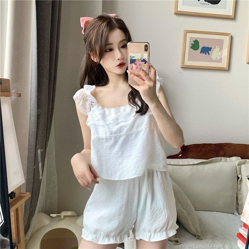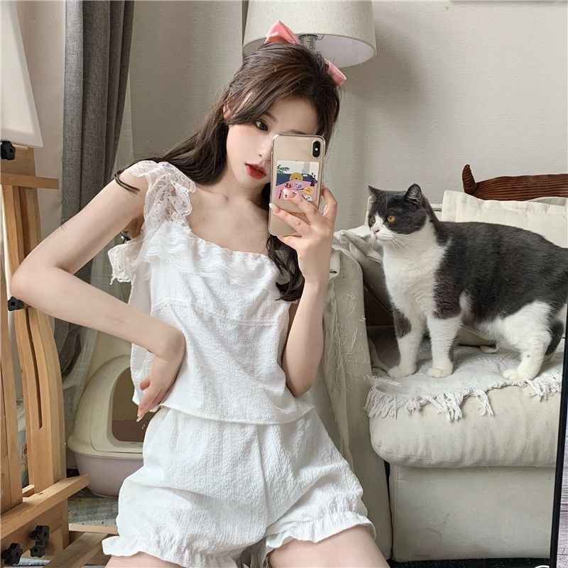 Летняя тонкая пижама, милый топ с чашечками, майка, шорты, комплект, популярно в интернете