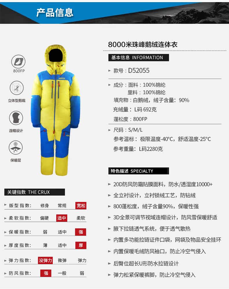 [Гора Эверест] Junyu Outdoor Goose Velvet Jacket Jacket.