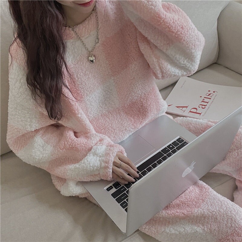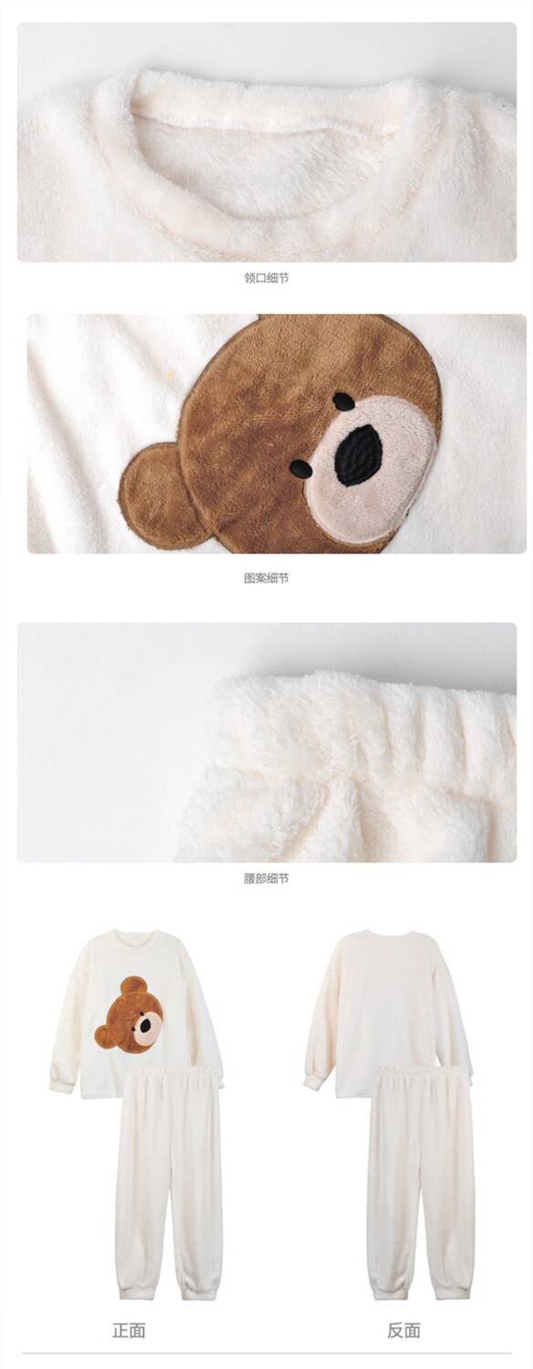 Коралловая бархатная зимняя флисовая пижама, милый фланелевый комплект для школьников и студентов, увеличенная толщина, в корейском стиле