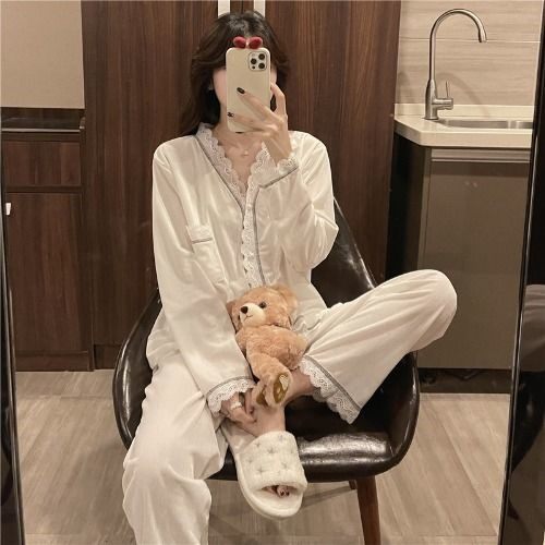 Бархатная демисезонная пижама для школьников и студентов, брендовый лонгслив для выхода на улицу, комплект, осенняя домашняя одежда, в западном стиле, популярно в интернете