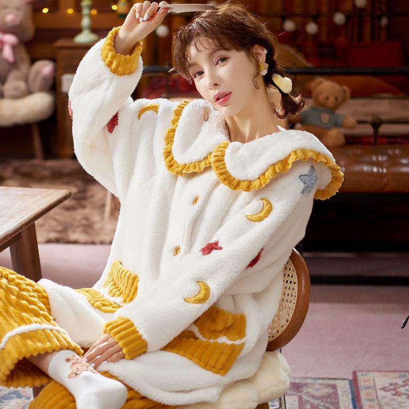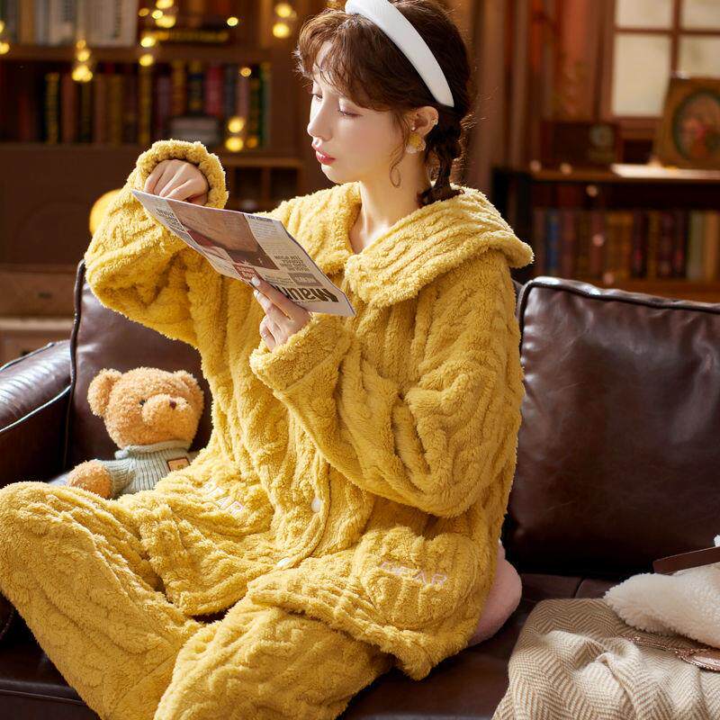 Фланелевая милая утепленная пижама для выхода на улицу, коралловый бархатный кардиган, комплект, в западном стиле