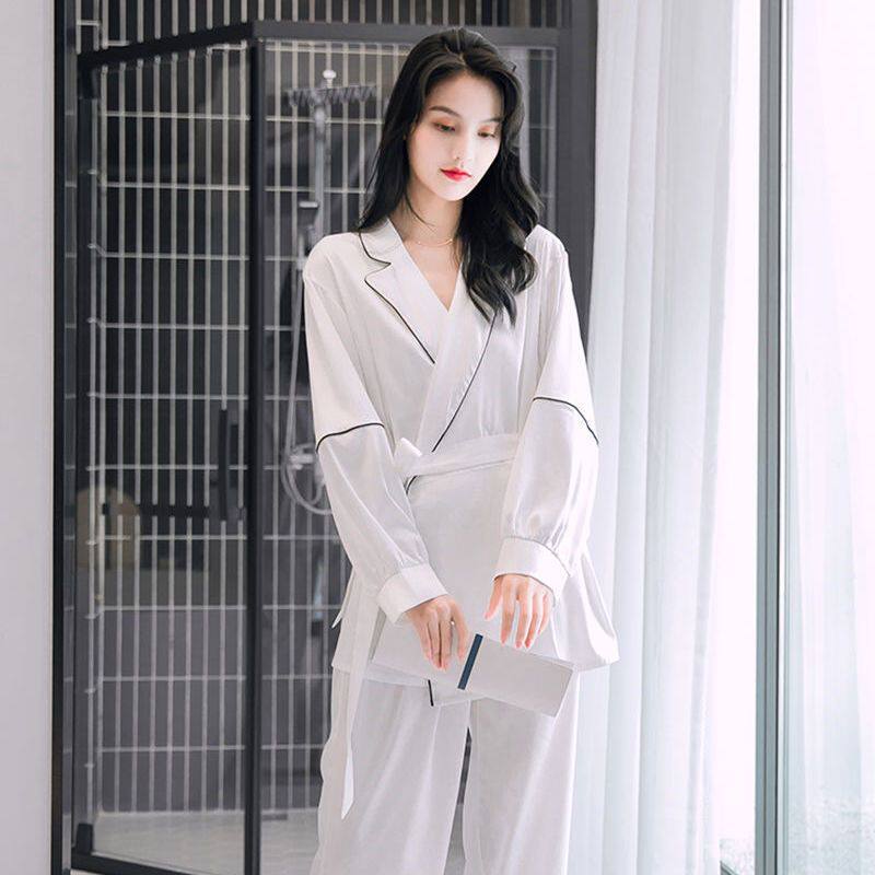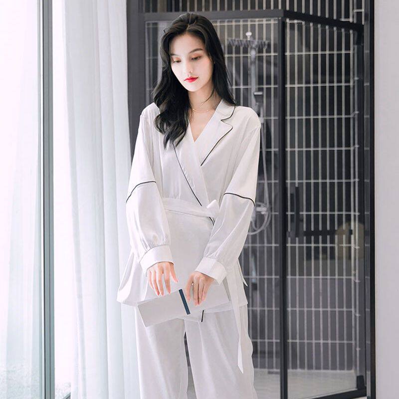 Пижама, осенний шелковый лонгслив, сексуальный тонкий комплект, коллекция 2022
