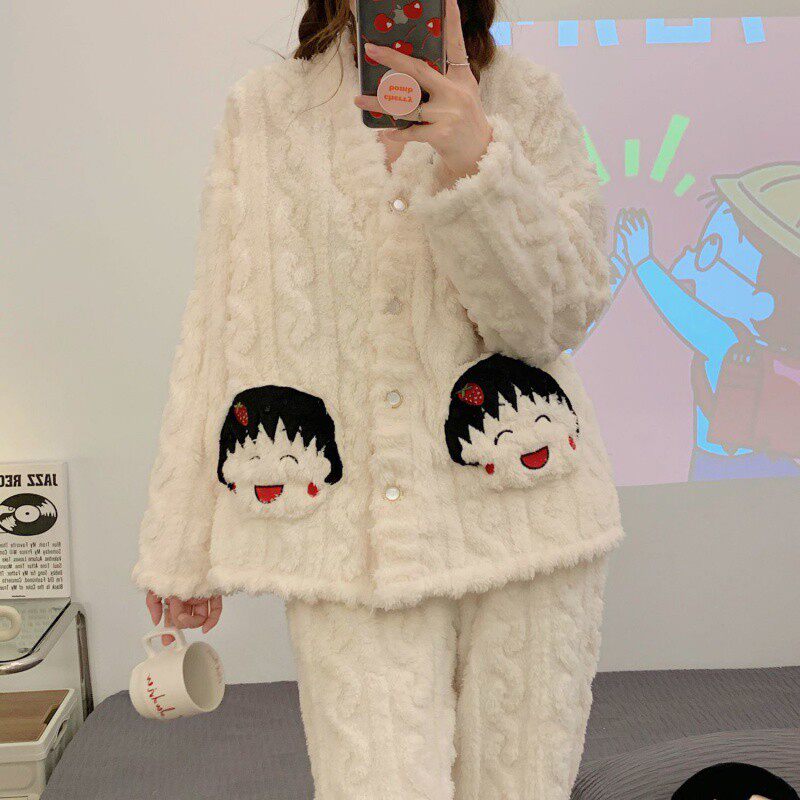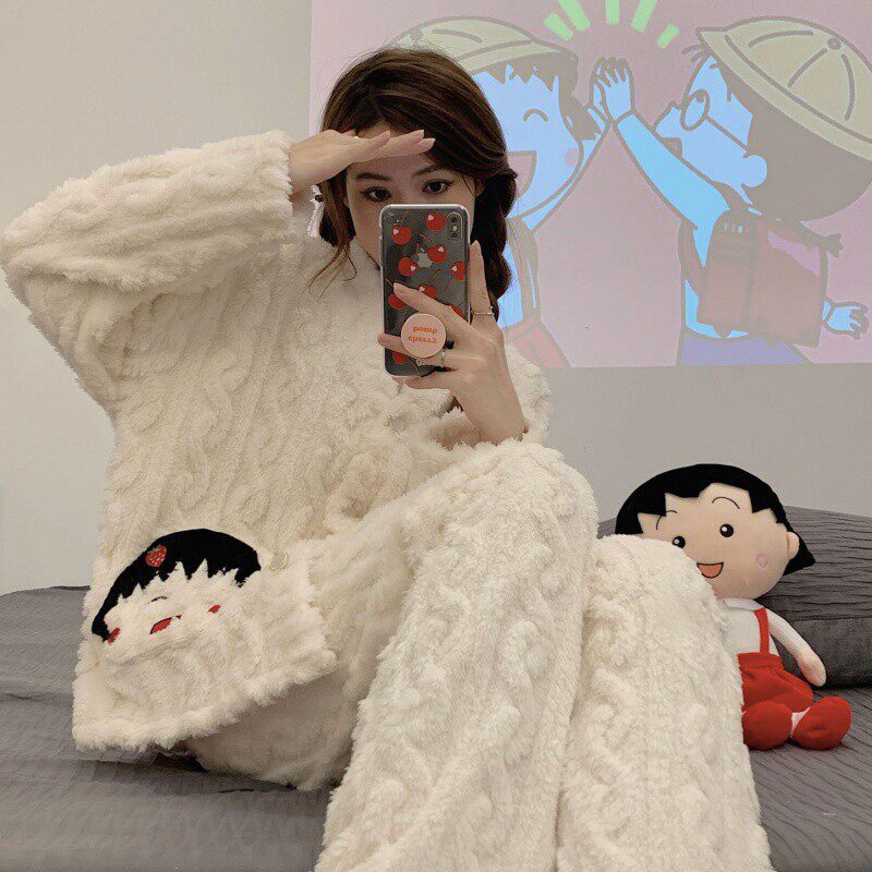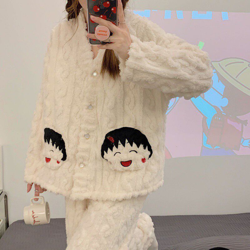 Демисезонная коралловая бархатная мультяшная пижама, утепленный бархатный комплект, простой и элегантный дизайн