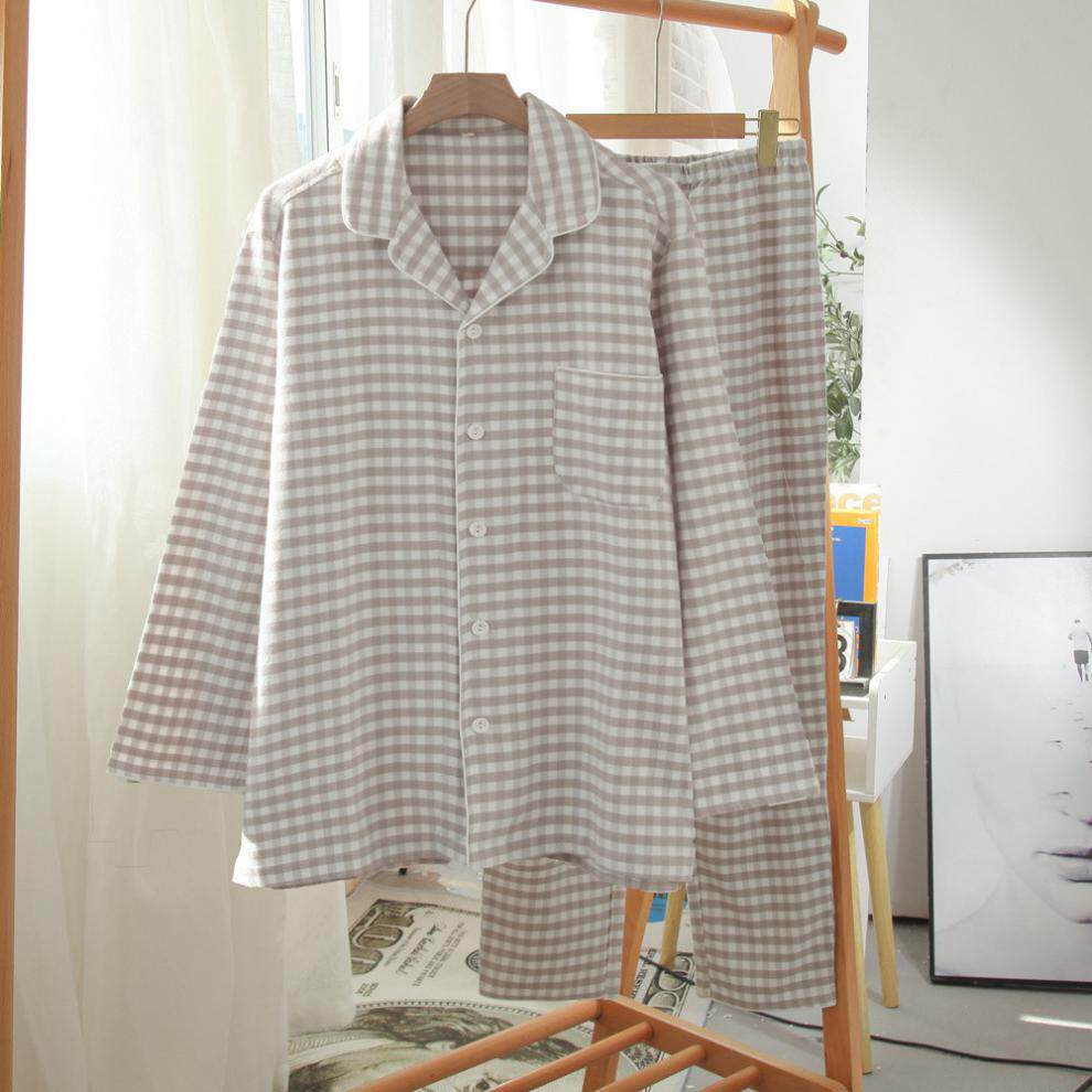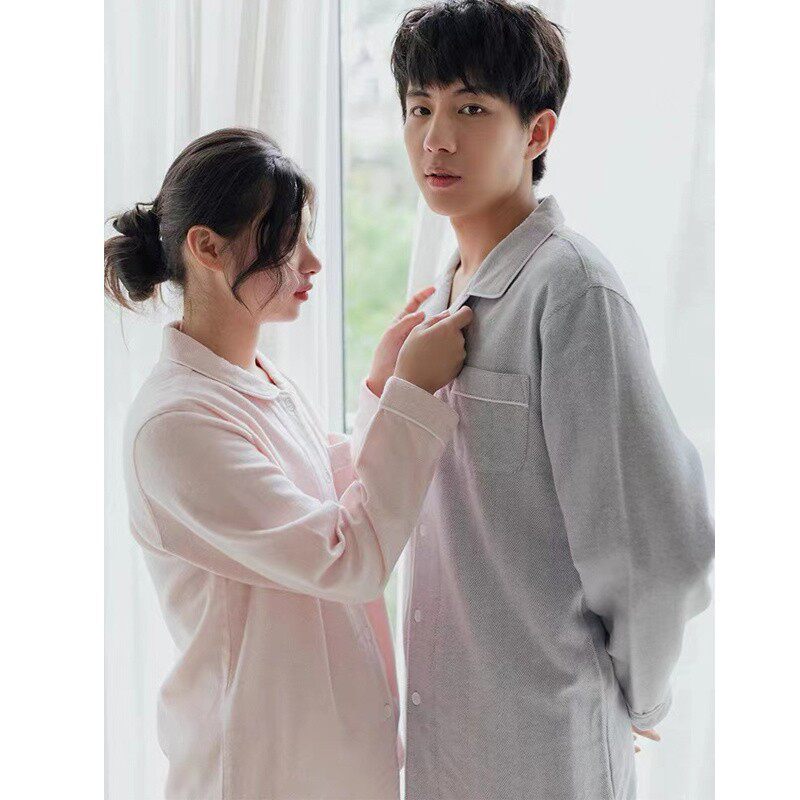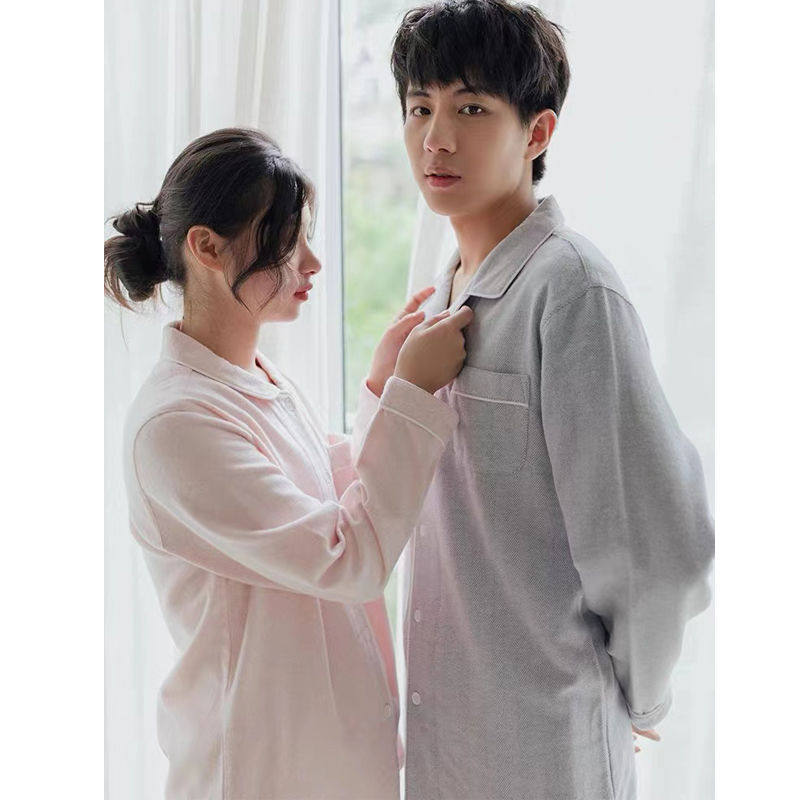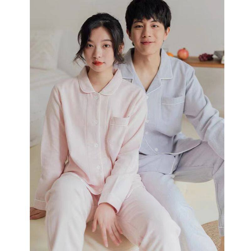 Японская хлопковая демисезонная пижама, бархатный лонгслив подходит для мужчин и женщин, демисезонный комплект, для влюбленных