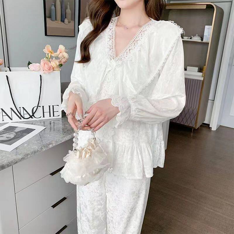 Бархатная пижама, лонгслив, осенние нарукавники, осенний комплект, ретро наряд маленькой принцессы, изысканный стиль