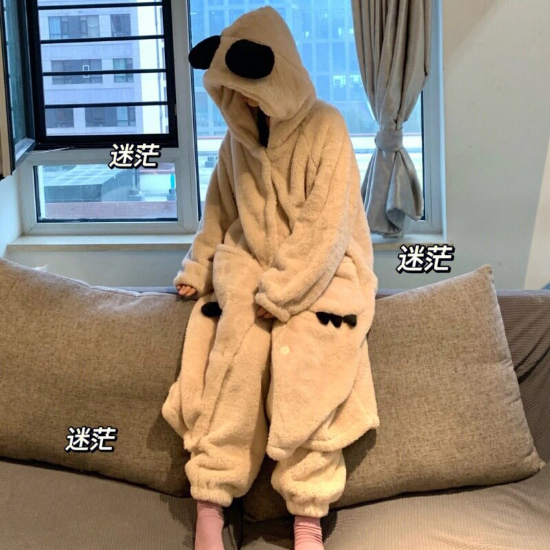 Коралловая бархатная пижама, зимний утепленный милый комплект, большой размер