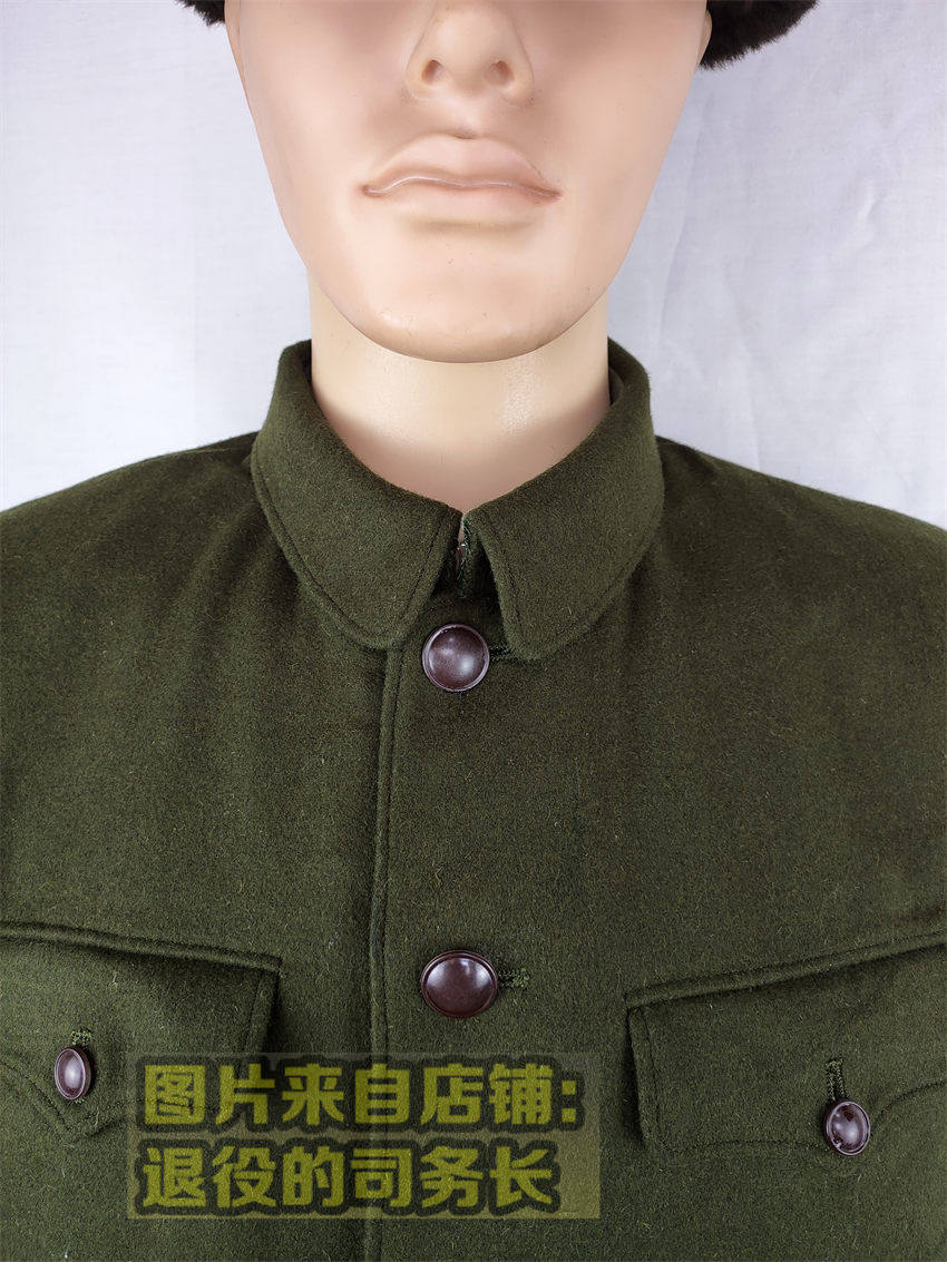 Старомодное зимнее шерстяное шерстяное пальто, зеленый старомодный комплект, ностальгия