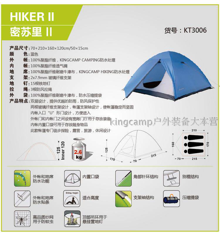 KingCamp Went Outdoor Camp Double -Layer Double -Seseson Try Wind и Rain -Resytion KT3006