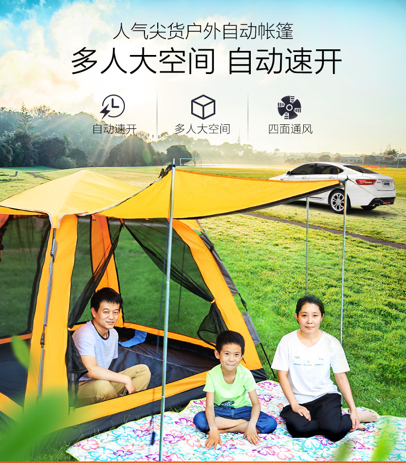 Дорожная автоматическая палатка для двоих для кемпинга, полностью автоматический, увеличенная толщина