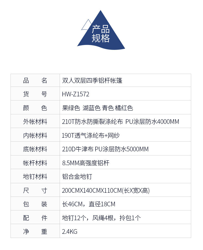 имя Расчет: Hewlof/Gongwolves Double Double -Layer Four Seasons Алюминиевая палатка