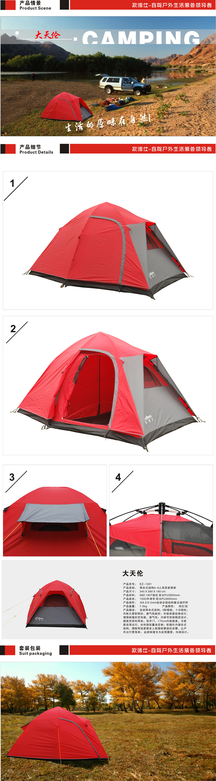 Внешняя учетная запись: 68d 190T полиэфирной водонепроницаемой PU3000 мм