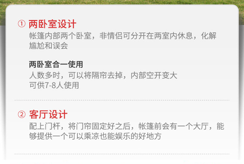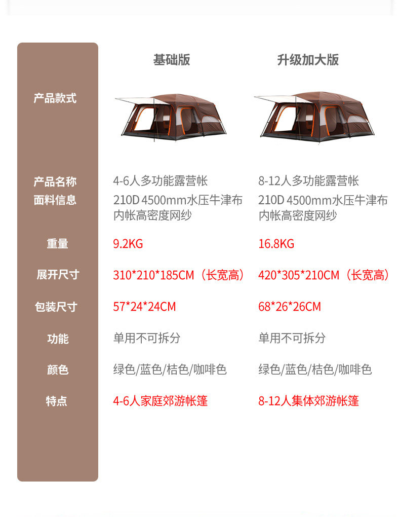 Вторая комната и одноживая палатка на открытых казармах, густой дождь и дождь, солнцезащитный крем, двухслойный 3-4-6810 человек в кемпинге большие два