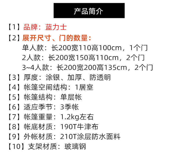 | Цвет: | Палатка с одним модельным цветом, Синяя палатка, палатка на 2 человек, Зеленая палатка, палатка на 2 человек, Красная палатка, палатка на 2 человек, Оранжевая палатка, палатка на 2 человек, Синяя палатка, палатка на 3-4 человек, Зеленая палатка, палатка на 3-4 человек, Красная палатка, палатка на 3-4 человек, Оранжевая палатка, палатка на 3-4 человек, Палатка сингл (случайный цвет)+проницательница влаги, Палатка 2 человека+влага -защитные прокладки, Палатка 3 ~ 4 человека+влага -защитные прокладки |
