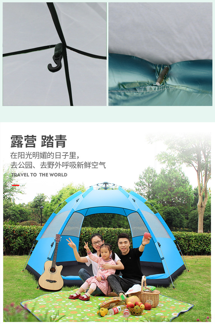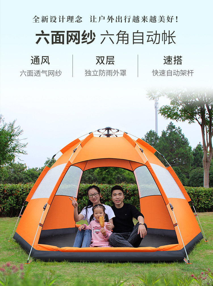 Автоматическая дорожная шестиугольная палатка для кемпинга, полностью автоматический, увеличенная толщина