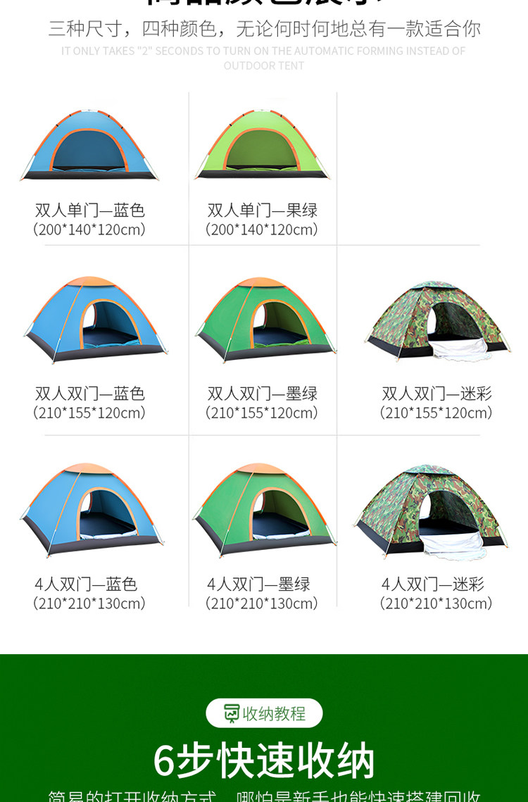 Дорожная автоматическая палатка для кемпинга, полностью автоматический, увеличенная толщина