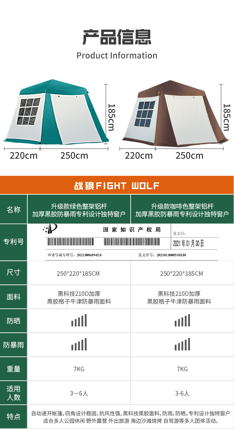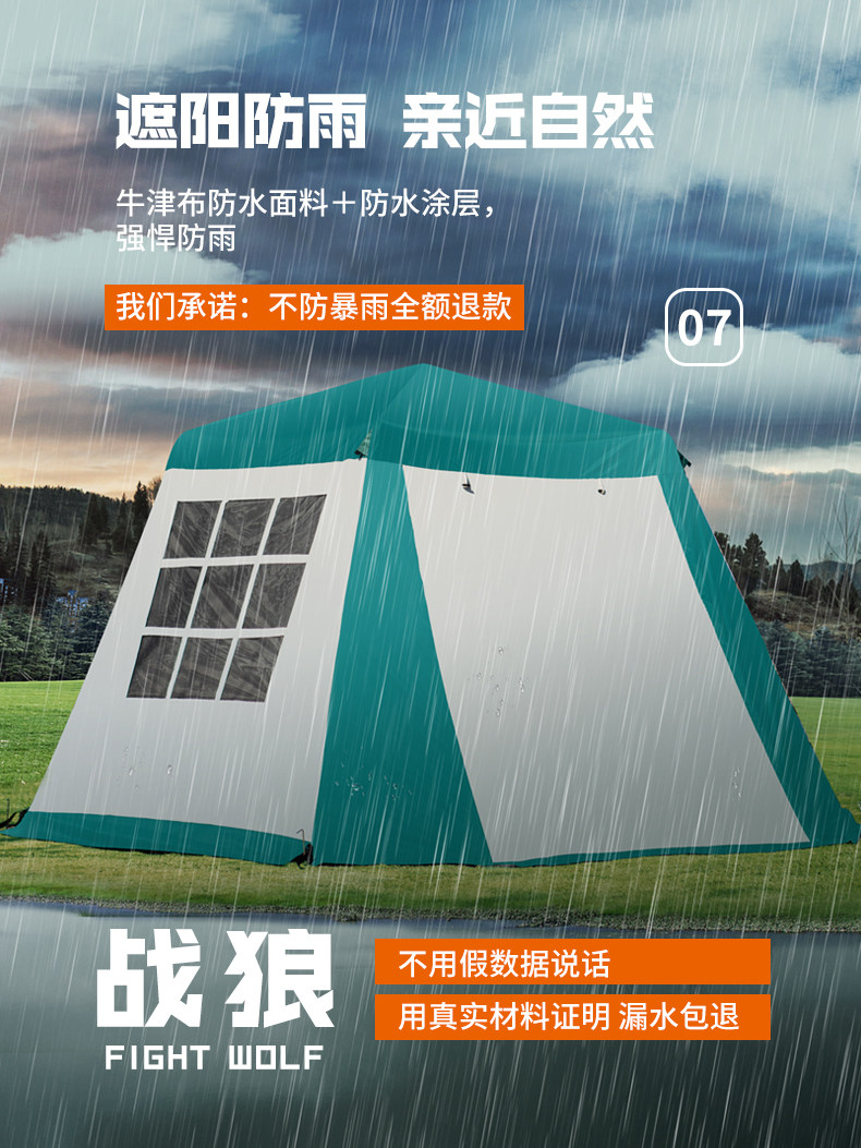 War Wolf Outdoor Прямой продажи, сгущающий виниловый автоматический алюминиевый стержень от 3 до 4 человек, от 5 до 6 человек плюс двойной баллончик дождливый дикий лагерь палатка