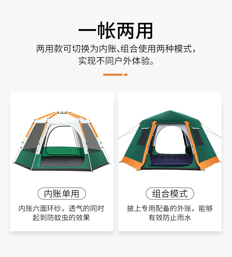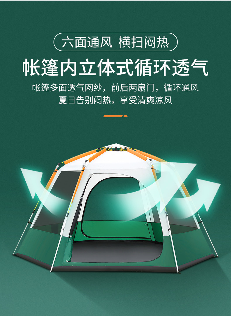 Гексагональные палатки на открытом воздухе и дождь против холма 3-4 человека 5-8 человек Семейный автоматический кемпинг большой кемпинг