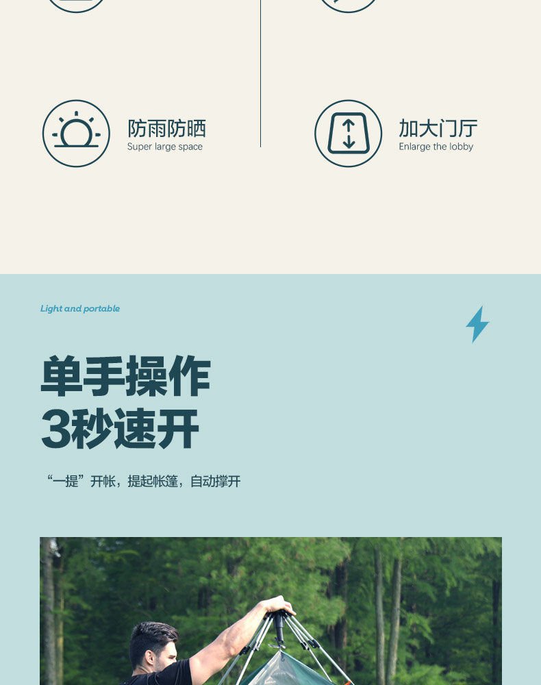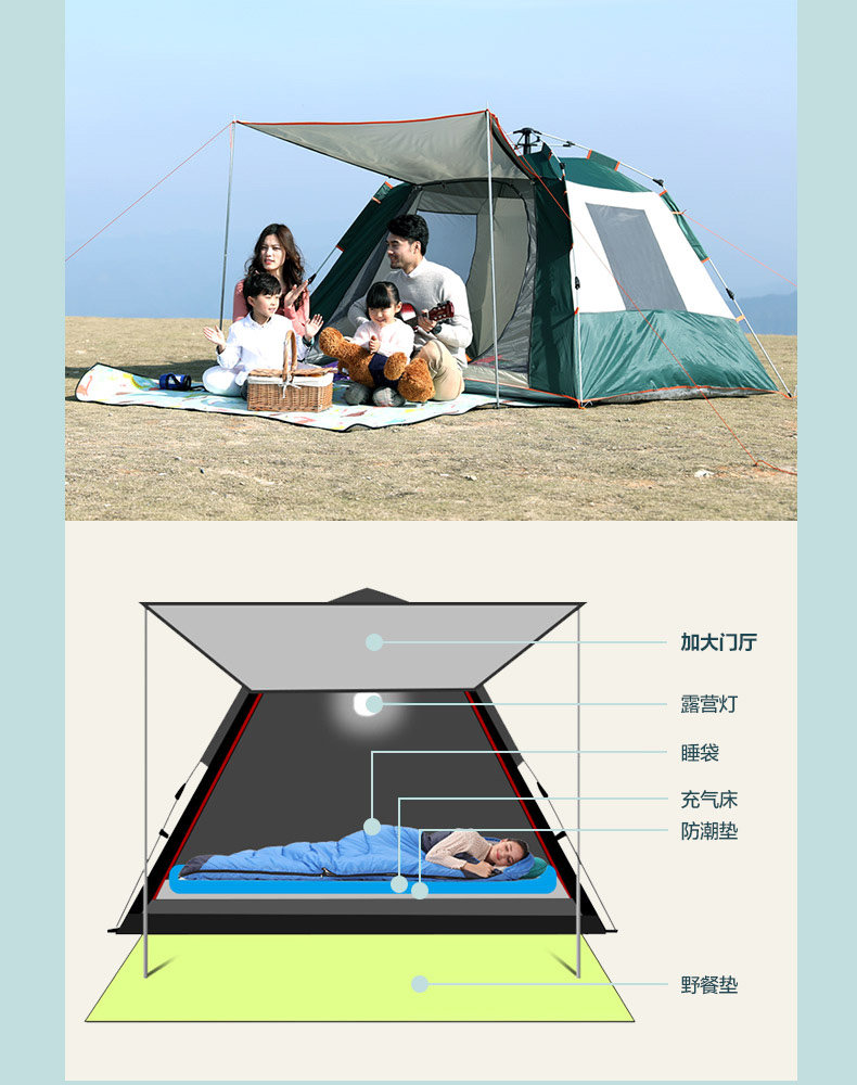 南极人 Дорожная портативная складная палатка, автоматическое снаряжение для кемпинга, увеличенная толщина