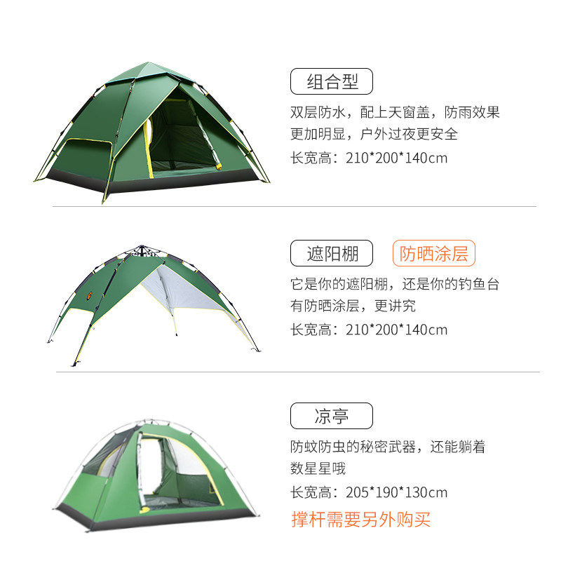 Дорожная автоматическая палатка, снаряжение для двоих для кемпинга, полностью автоматический, увеличенная толщина