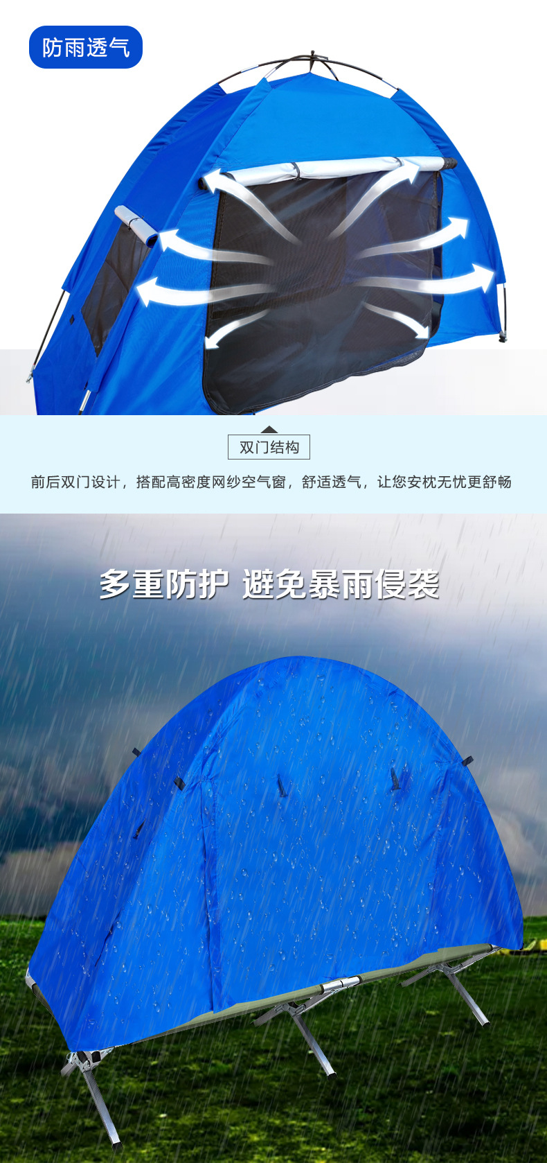 Синяя складная дорожная двухэтажная портативная палатка для кемпинга, увеличенная толщина