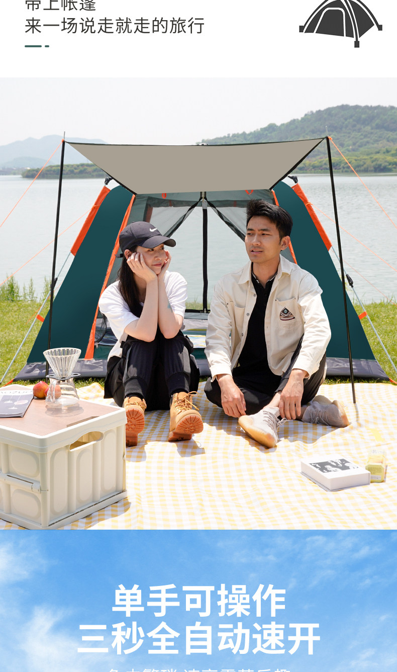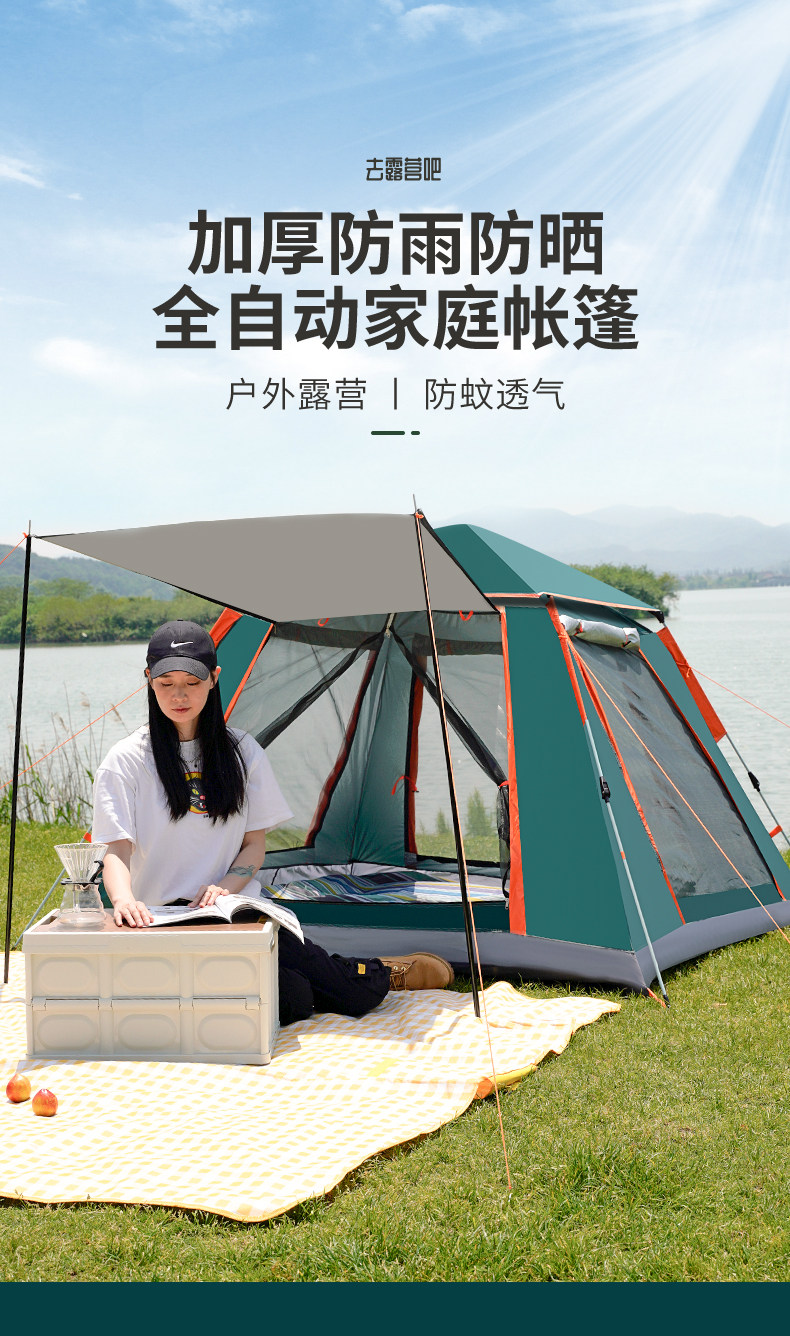 Дорожная палатка для кемпинга, автоматическое складное портативное снаряжение, полный комплект, увеличенная толщина, полностью автоматический