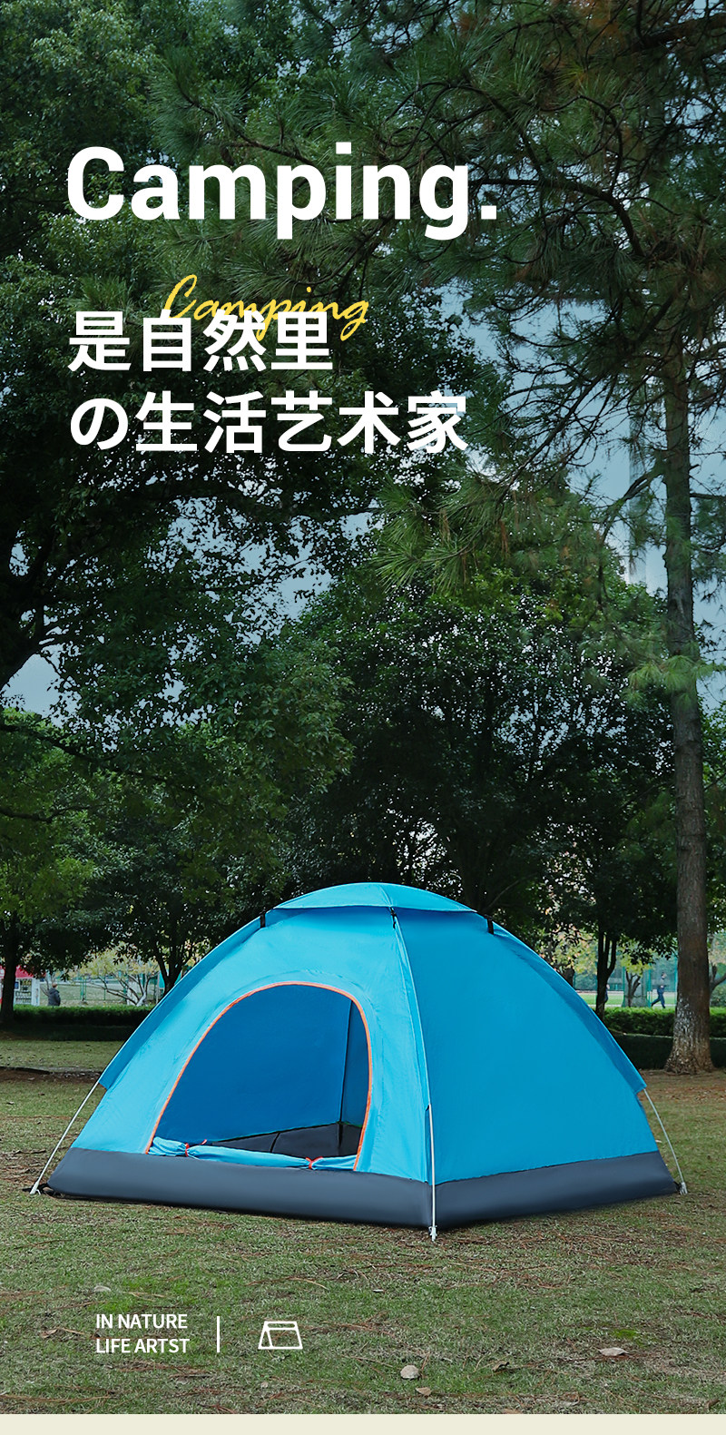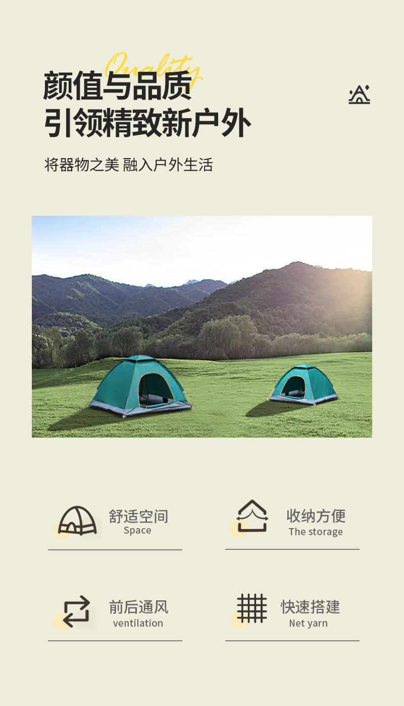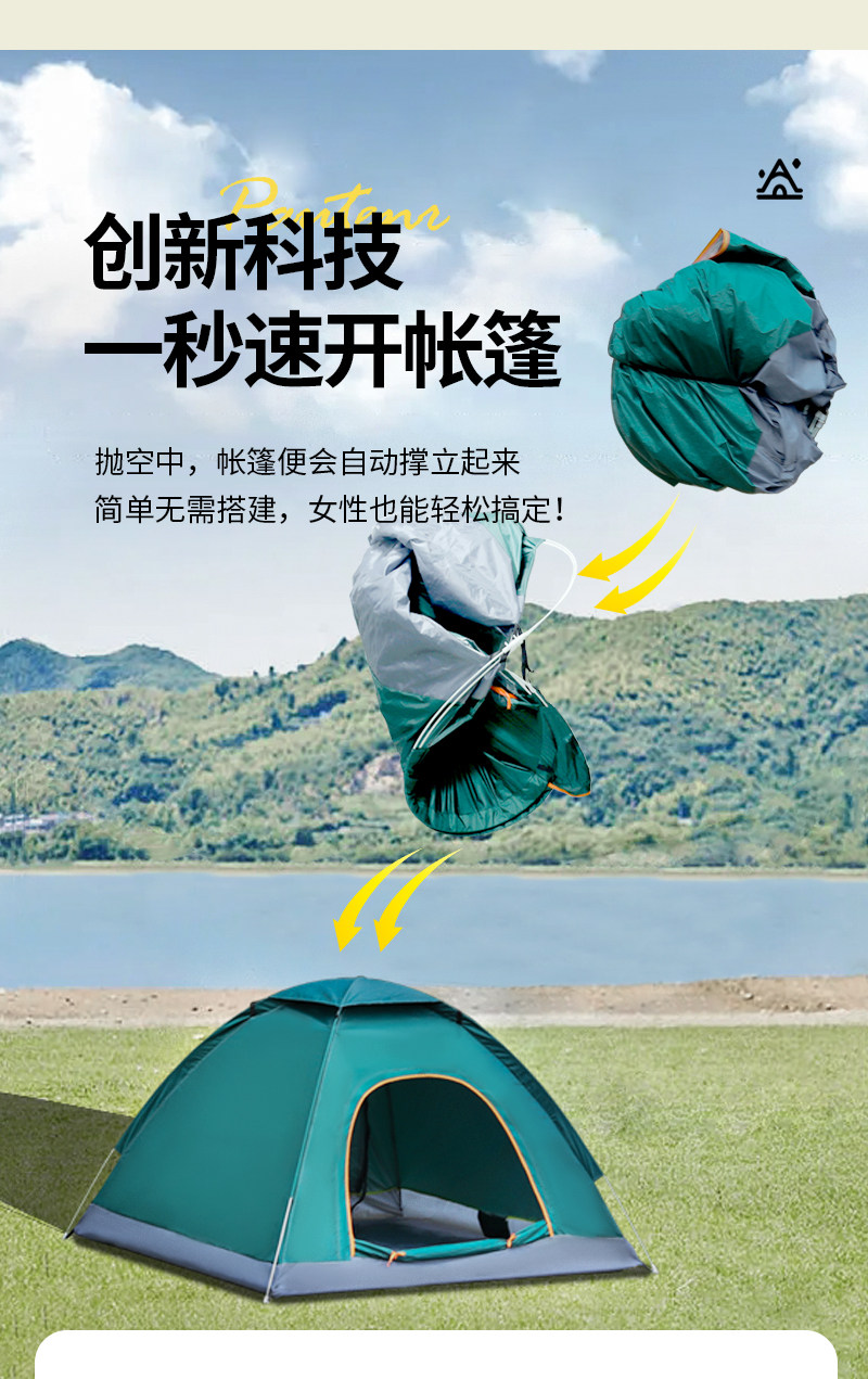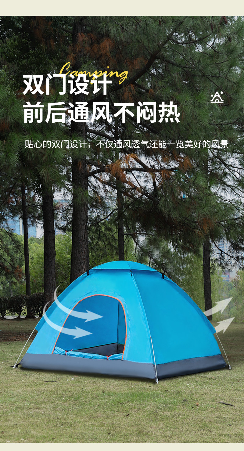 Палатка для улицы на 3-4 человека, полностью автоматическая палатка для кемпинга, 2 одиночные уличные утолщенные водонепроницаемые и солнцезащитные палатки, сверхлегкие и быстро открывающиеся 𫔭