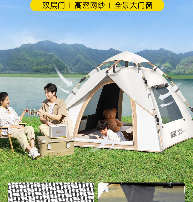 Дорожная складная палатка, портативное автоматическое пляжное снаряжение для кемпинга, увеличенная толщина, полный комплект, полностью автоматический