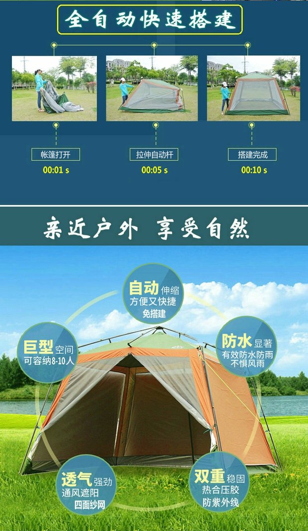 Автоматическая москитная сетка, пляжный навес для кемпинга, увеличенная толщина