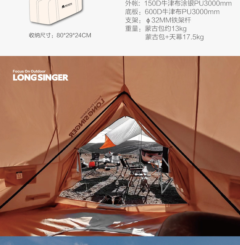Longsinger Dragon Walker Camping палатка на открытом воздухе перекрытие 10 человек толстые дождь -надежная роскошная монгольская сумка