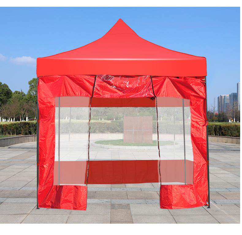 Открытая палатка сарает, размахивая киосками с солнечной кожей и дождей, прозрачной изоляцией изоляции и зонтиком профилактики эпидемии.