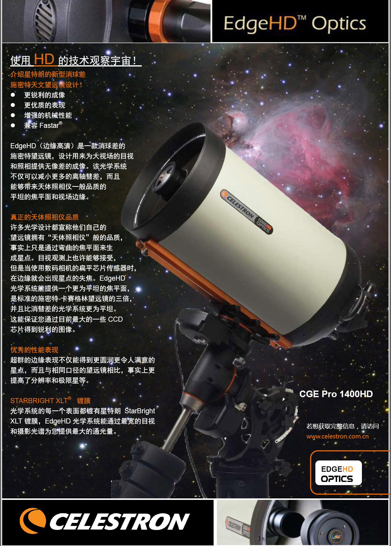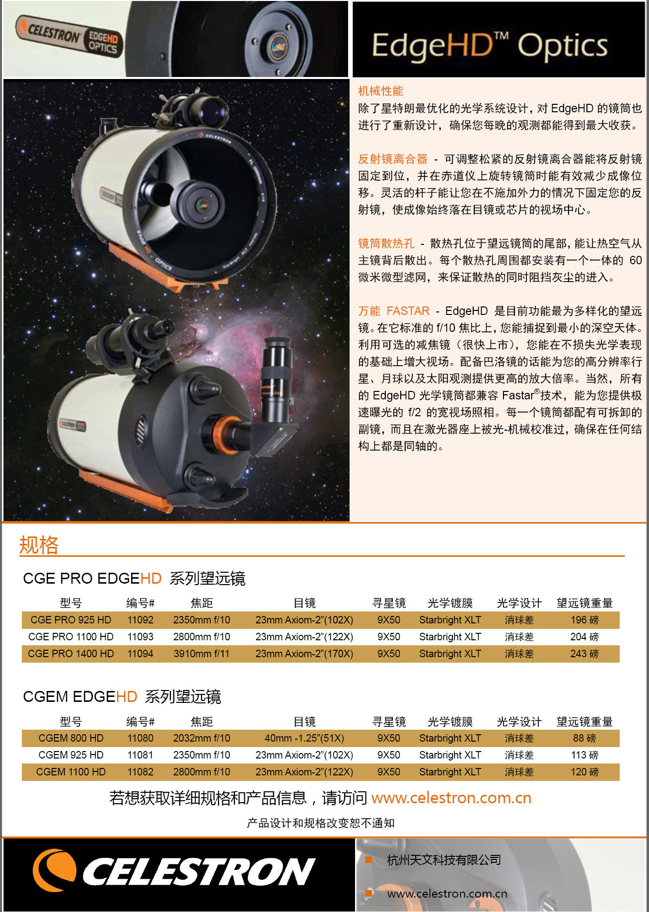 Оптическая система EdgeHD имеет все компактные структуры телескопа в стиле Schmida CaseGreen (SCT). Она объединяет улучшенную оптическую систему с высоким разрешением для широковерового полевого и небесного инструментальной фотографии.