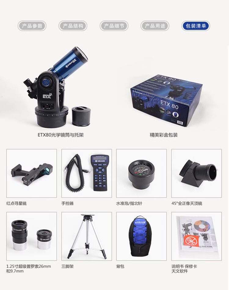 American Meade Made ETX80 астрономический телескоп глубокий воздух просмотр высокого показателя полностью автоматическая интеллектуальная звезда