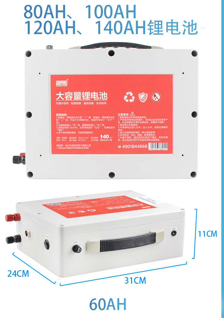 Вместительные и большые литиевые батарейки с зарядкой, 12v, 140AH