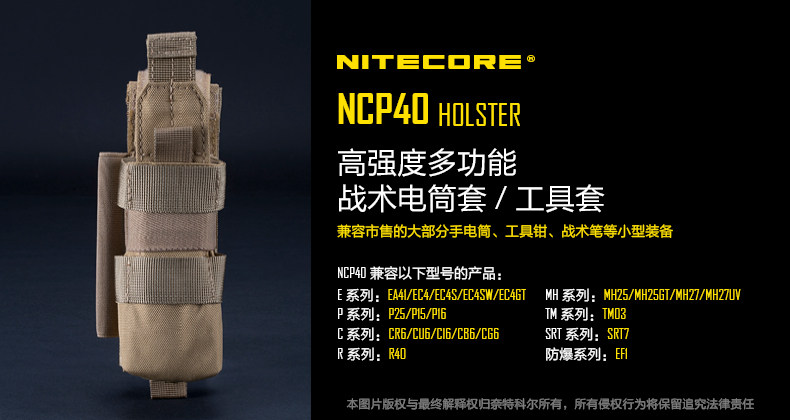 NITECORE NCP30 NCP40 Многофункциональный рукав талии подходит для одного секции 18650 светового фонарика