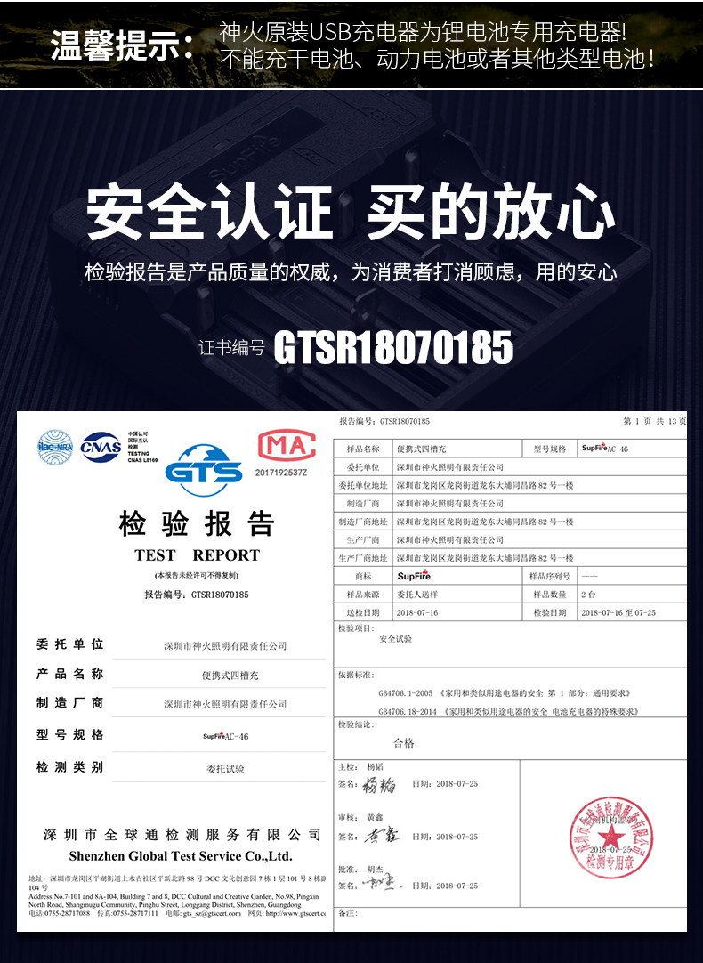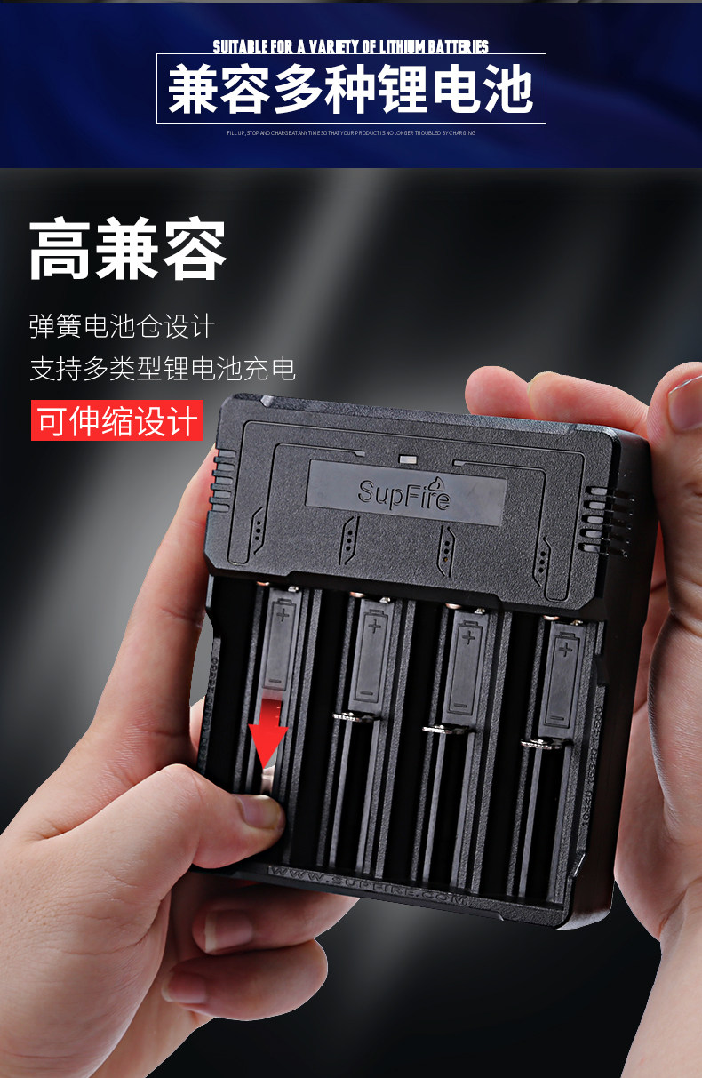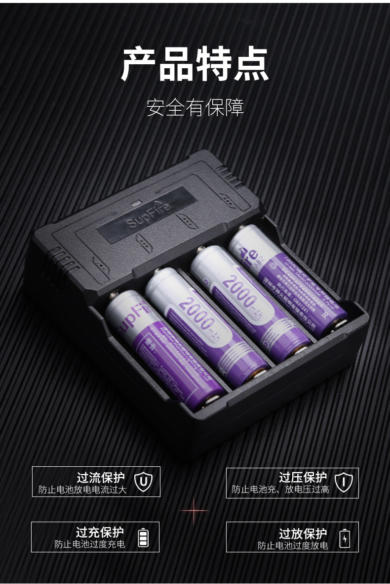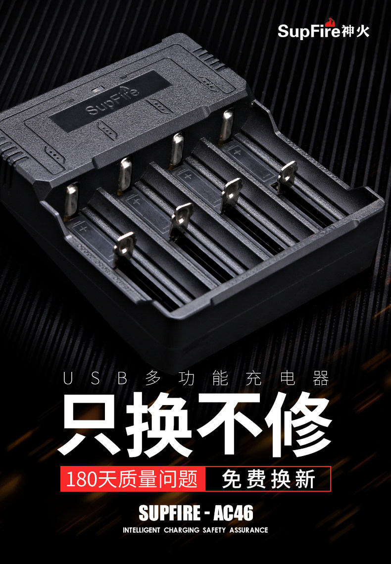 SUPFIRE SHENHUO 26650 Литийная батарея 18650 Зарядное устройство быстро зарядка много -функциональная USB четырехлетная универсальная зарядка
