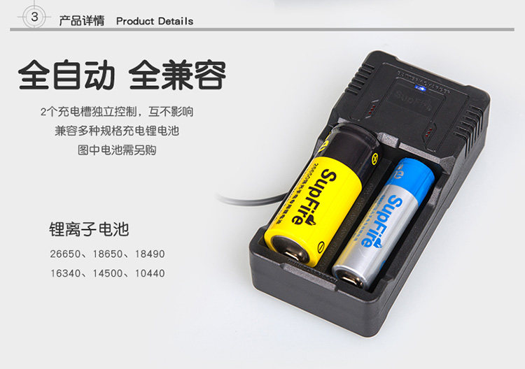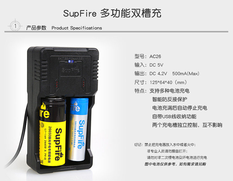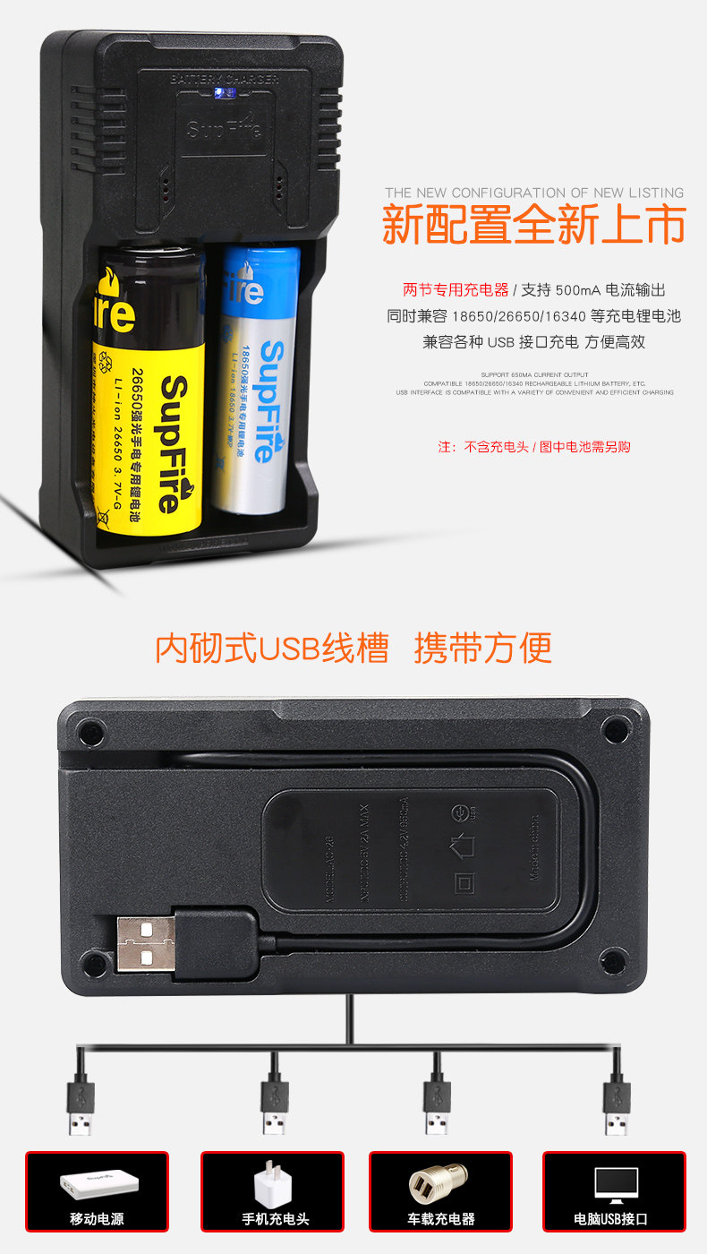 - Зарядка с двойной канавкой+зарядная головка+26650 секция батареи