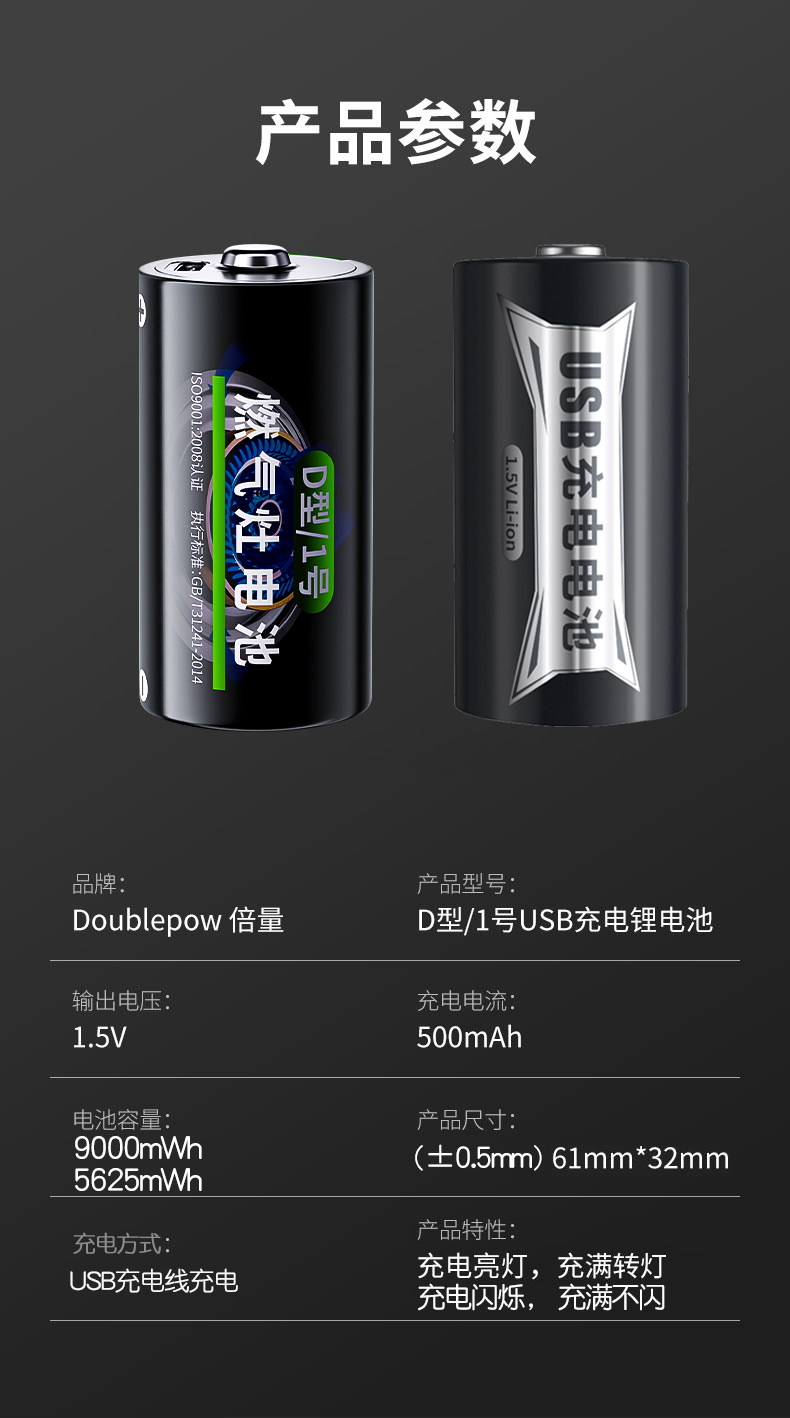 倍量 Вместительные и большые литиевые батарейки с зарядкой, 5v