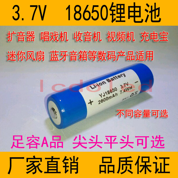 модель:3.7V 18650ЗаостренныйлитийБатарея (также известная как 4,2 В)