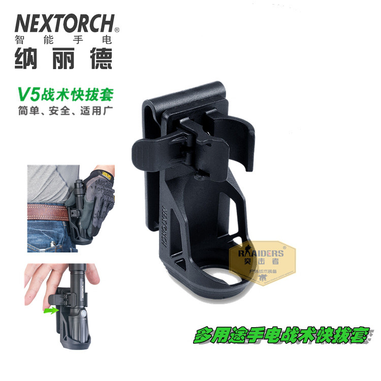 Nextorch Nalide v5 Тактический быстрый фонарик, 360°Поверните тактический фонарик быстрое вытягивание, крышка талии, портативное 360 -дегровое вращение, блокировка.Адаптация: диаметр фонаря 18650 года: 2.2-3.3 (см), диаметр головки фонарика: 3,2-3,7 см.Адаптироваться к ремню в пределах 2 -дюймовой (5 см)