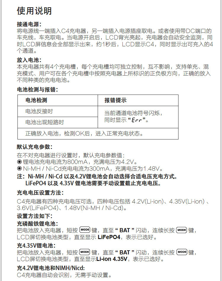 Кроме того, зарядное устройство C4 использует интеллектуальный дизайн автоматической идентификации, с разумной логикой и очень простым использованием!