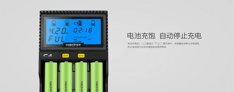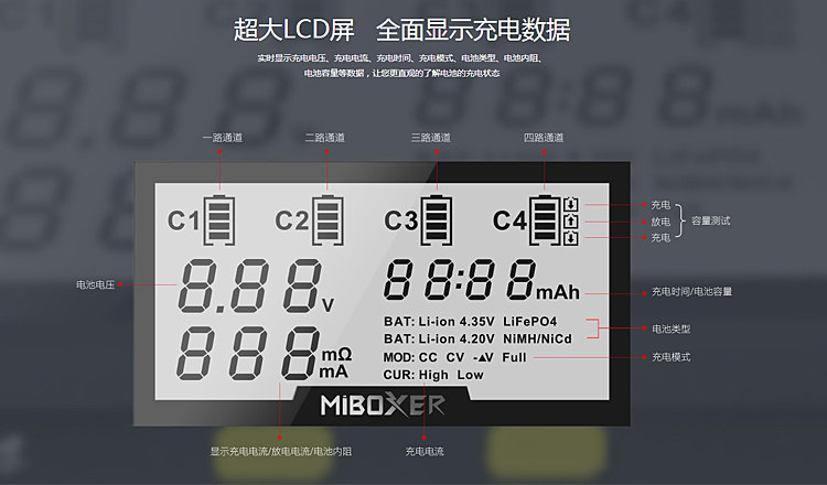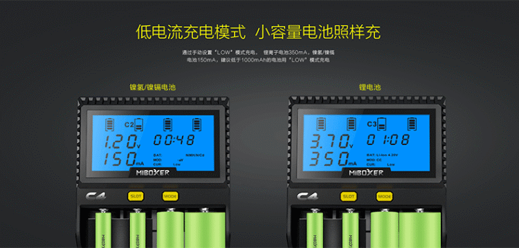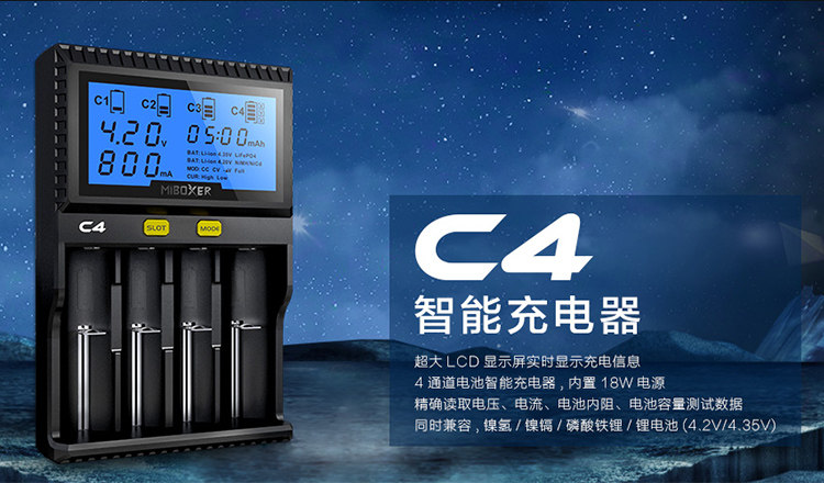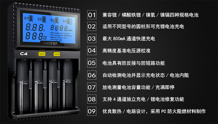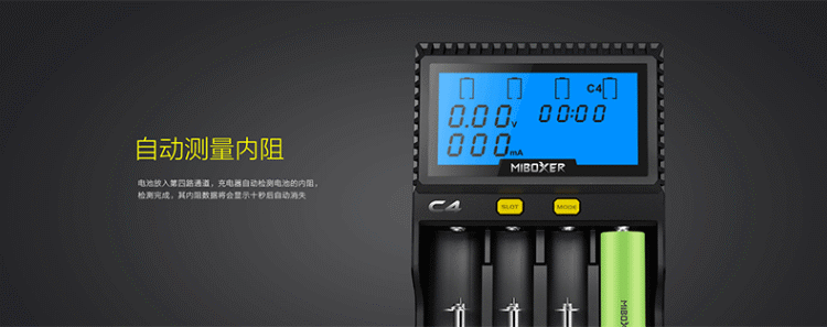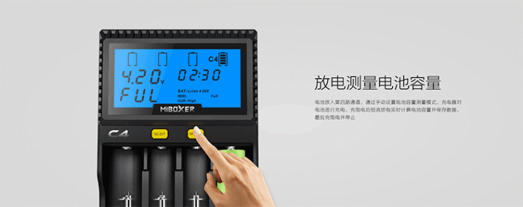 ·C4 зарядное устройствоЧетвертый слот может проверить емкость батареи и внутреннее сопротивление батареи, Помочь вам определить батареи с низкой производительностью;