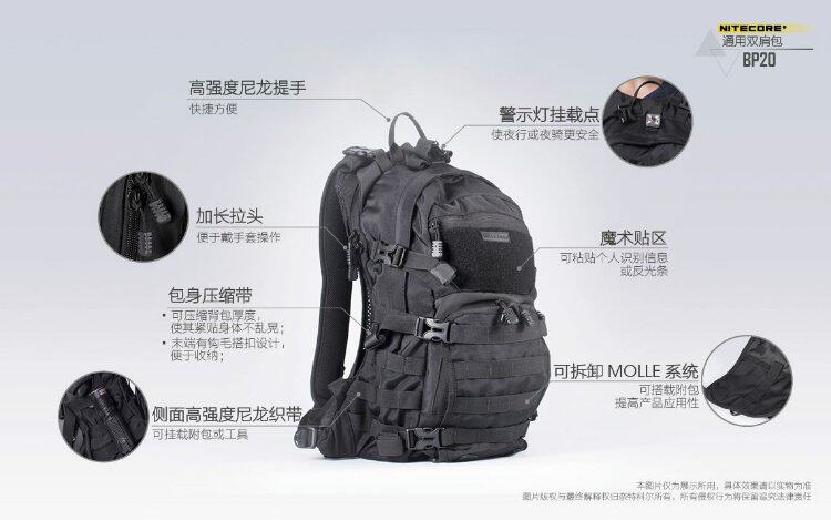 Nitecore Knight Cord BP20 Universal Outdoor Rackpack поставляется с дизайном дождевой крышки Molle System
