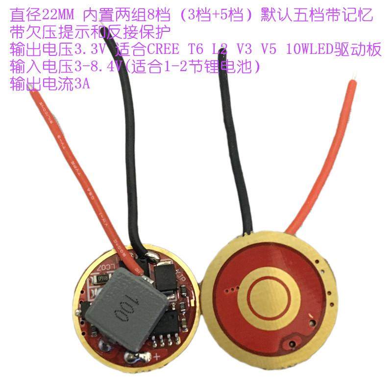 Cree T6 L2 v3 V5 10wled8 Плата платы 3A ток 1-2 Секция лития аккумуляторная плата 22 мм