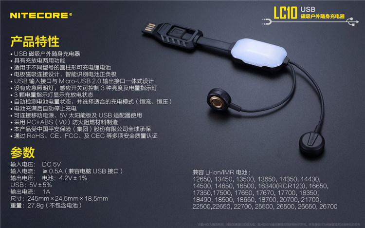 Nitkor LC10USB Магнитное наружное зарядное устройство зарядное устройство зарядное устройство, зарядка и сброс.