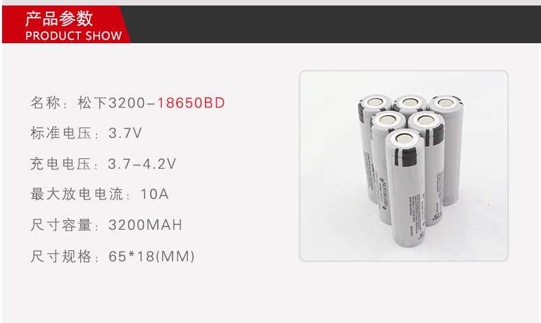 Название батареи: Panasonic 18650 цилиндрическая литий -ионная ионная ячейка
