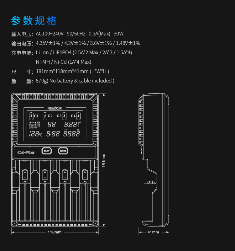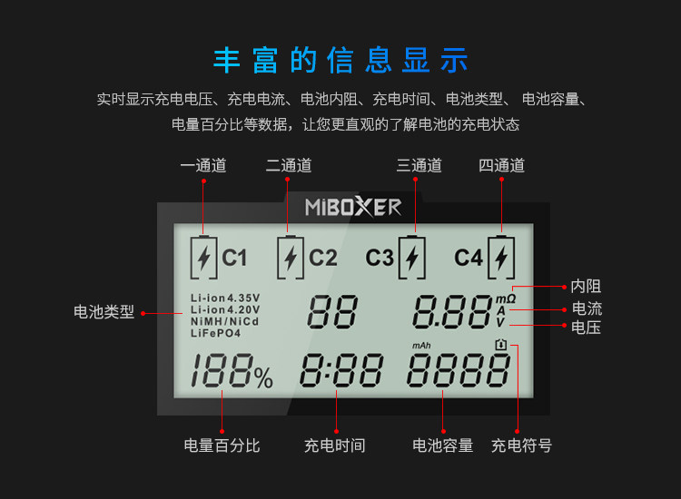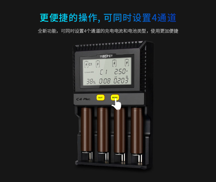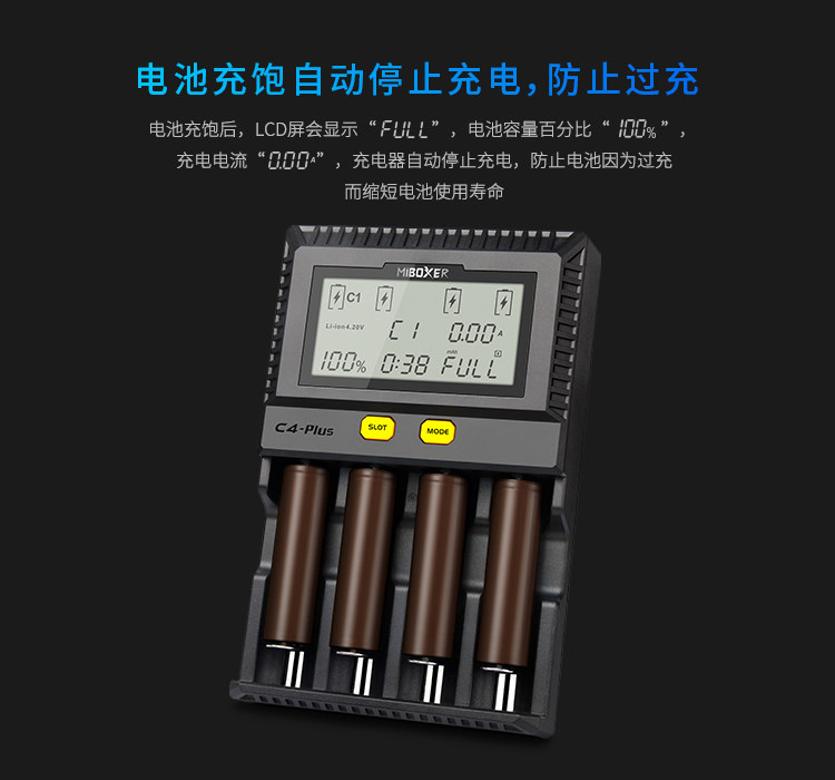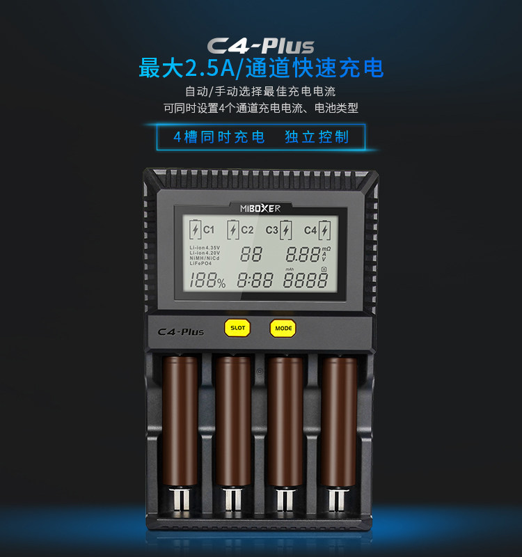 Miboxer C4-PLUS 18650 Тест зарядного устройства ЖКД интеллектуально быстрое литиевое зарядное устройство аккумулятора