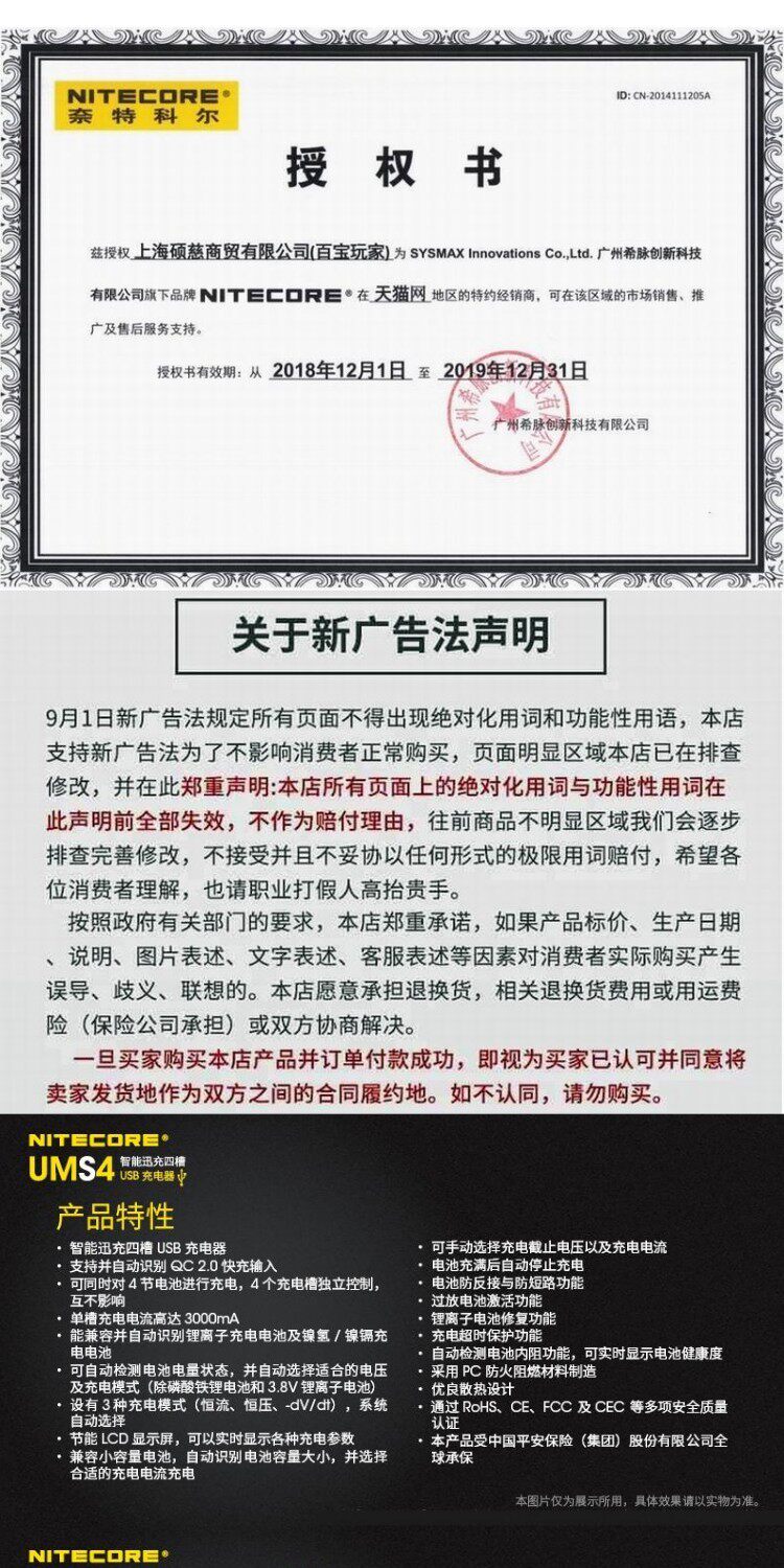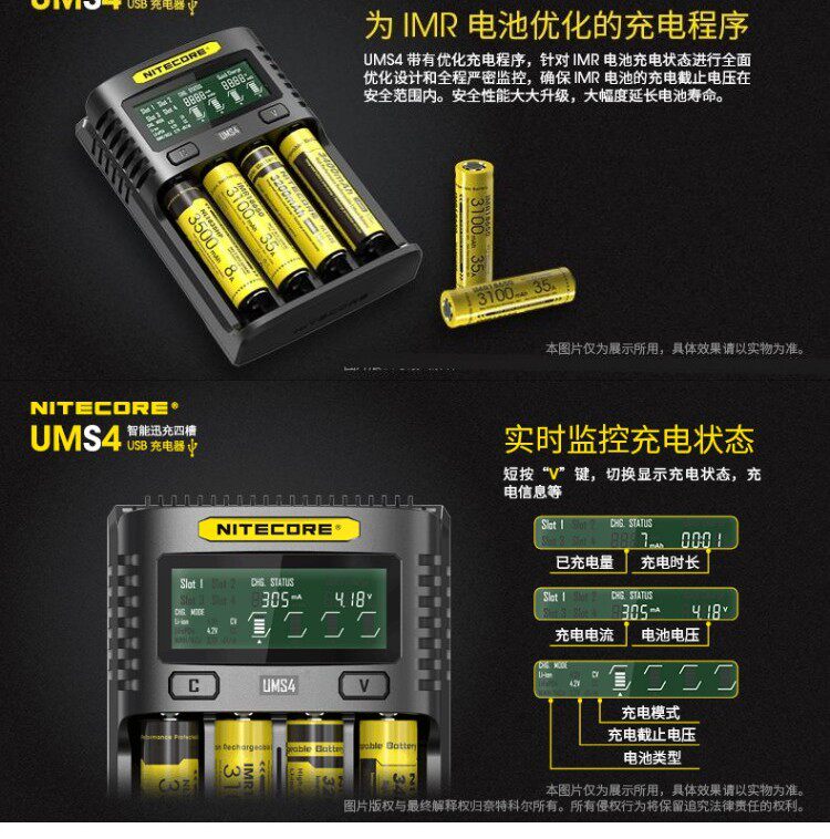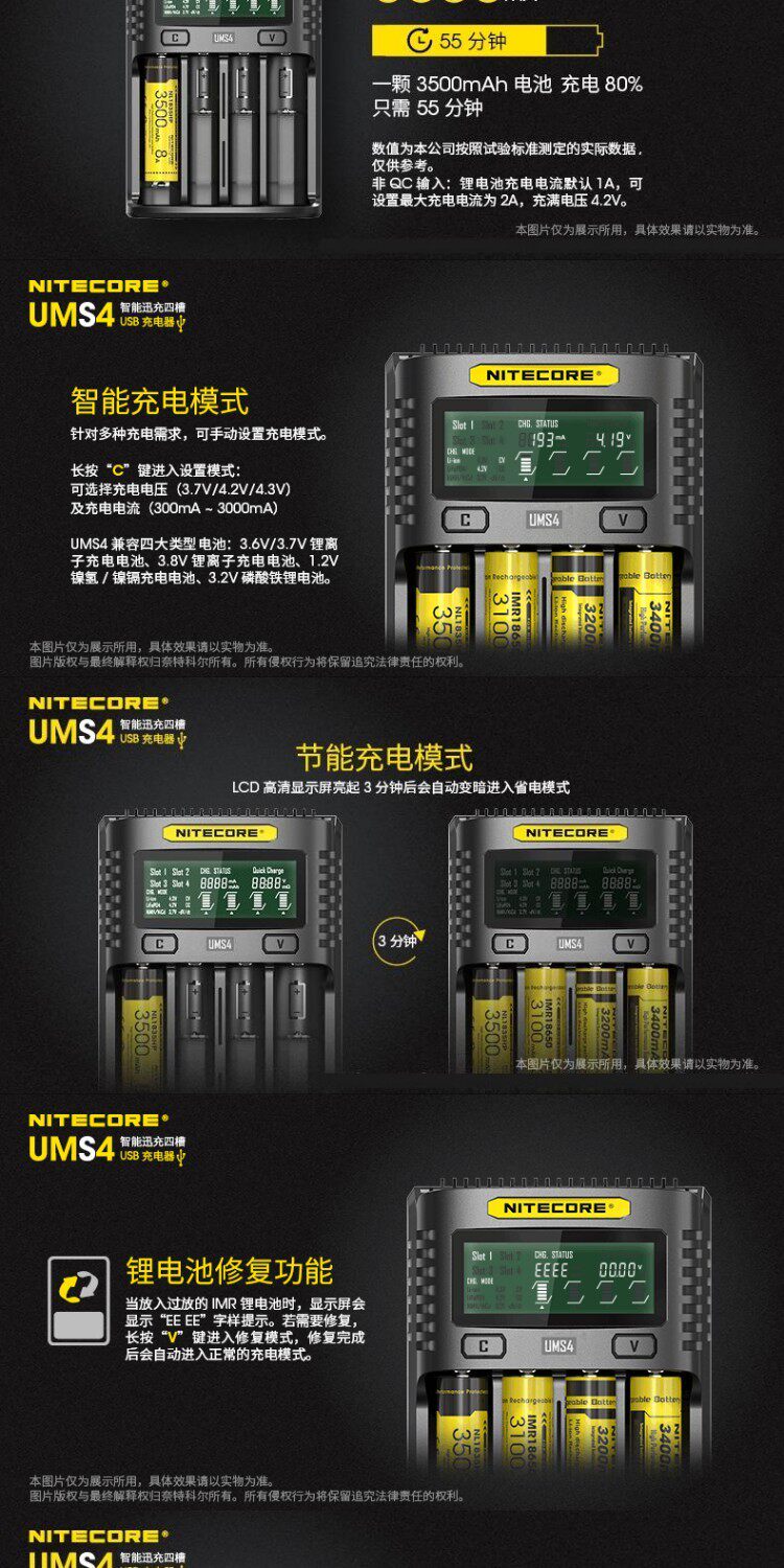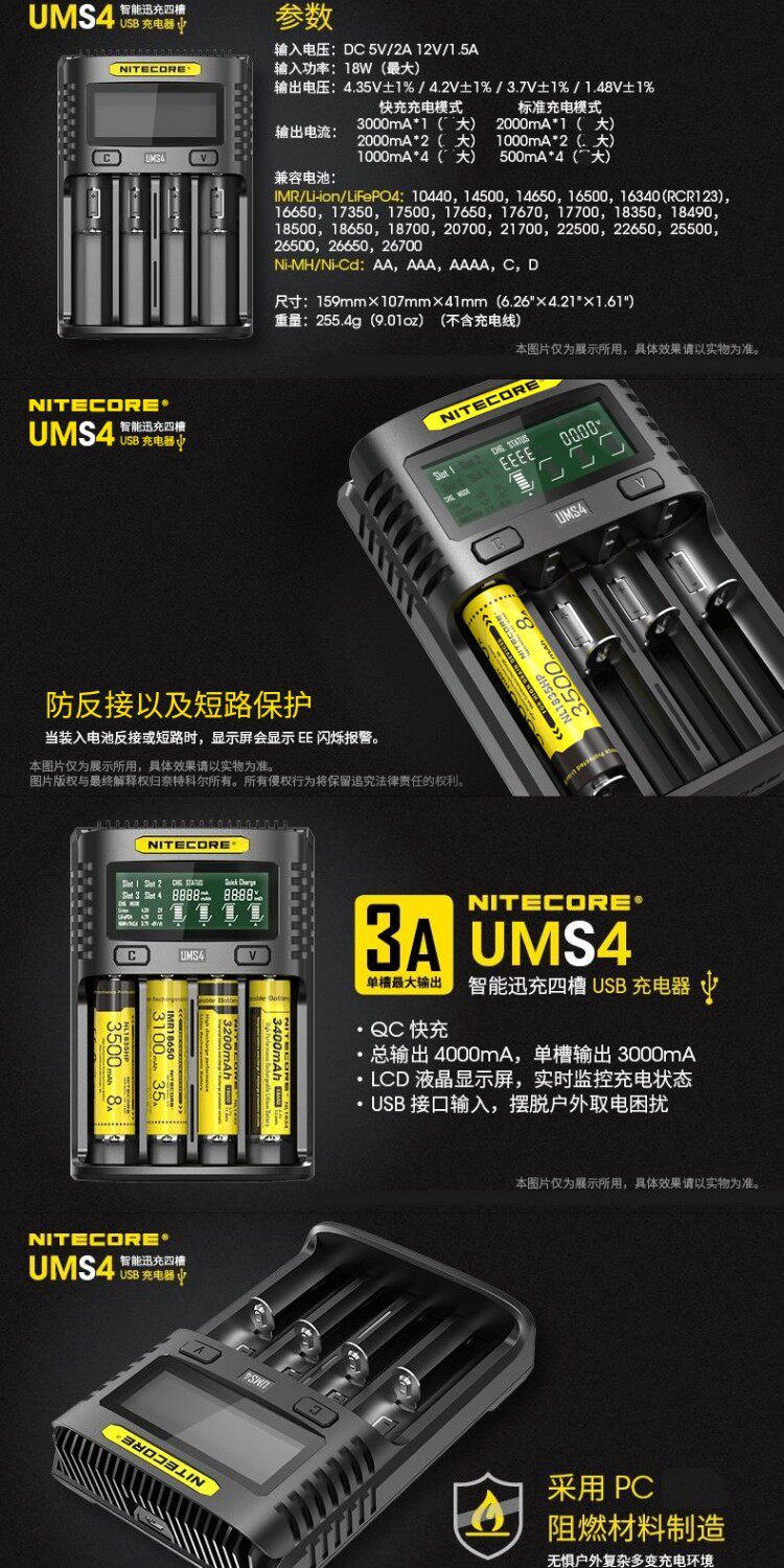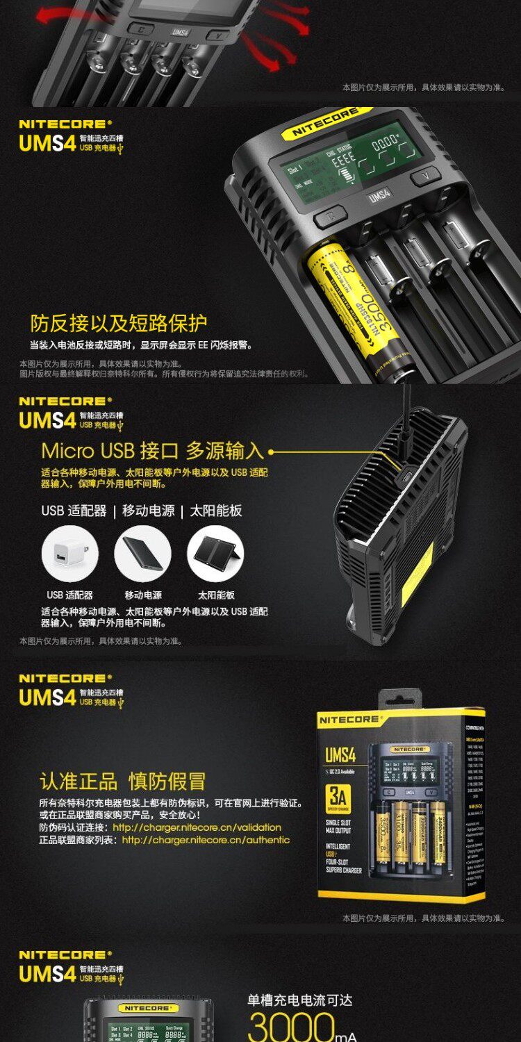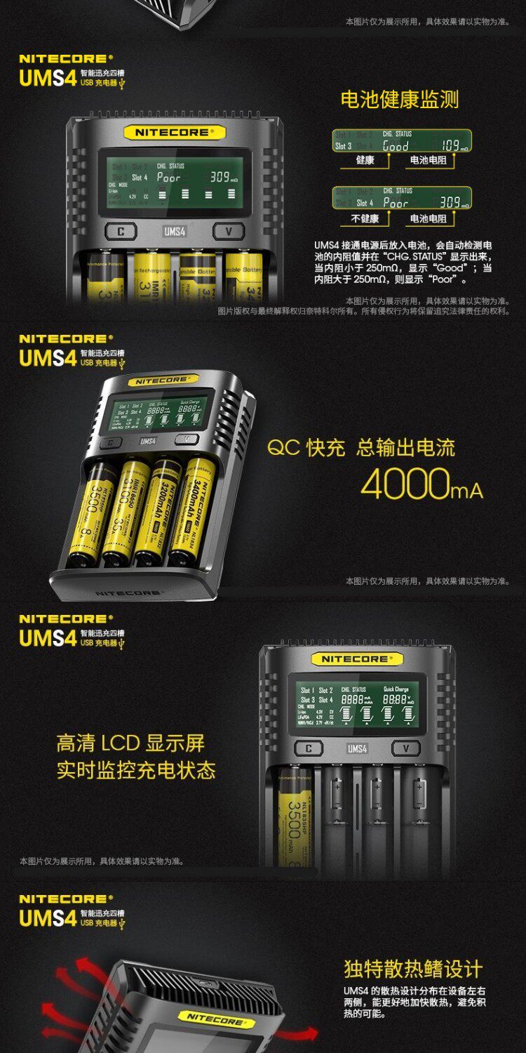 Nitecore, Knight Cord UMS2 Smart Four Four Fast QC Fast Fast Fast Gruging 4A Большое многочастотное многочастотное USB -зарядное устройство