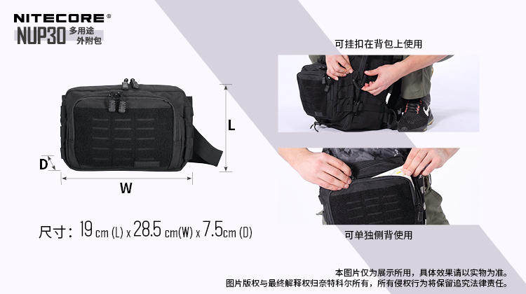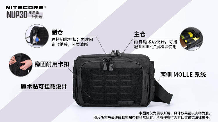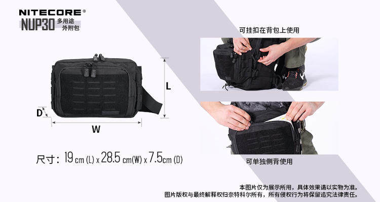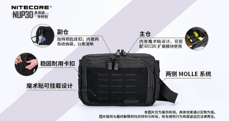 Nitecore Nitkor NUP30 Multi -Purpose 600D Высокопроницаемое удлинение полиэстера прикрепленное мешок с наружной сумкой